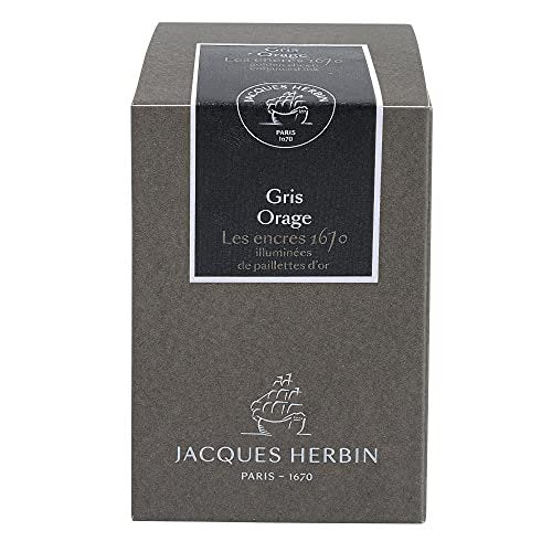 Herbin hbj15009 Anniversary Ink [1670 Gold Particles] Storm Gray for Fountain Pens/PenHerbin brand is a pledge of exceptional quality products at the service of your writing.Les Encres 1670, from the exclusive Jacques Herbin Collection, commemorate the year of the creation of the Herbin house in the heart of Paris.Dark in colour, Storm Grey ink is covered in golden glitter which gives it depth and depth. This ink recalls the storm and the glitter the lightning.50ml bottle with an original and noble design: the cap is covered with sealing wax that recalls the colour of the ink.A wax seal stamped 1670 decorates each bottle with elegance and majesty..Ink specially formulated for use with fountain pen, rollerball pen, glass nib and nib holder. It is indeed finely filtered so as not to clog the pens..Made in France. Gold glitter ink for brilliant and original writing..Convenient: The ink in a bottle reduces the ecological impact by generating less waste than disposable cartridges or pens..Waxing of the bottles and seal made in a traditional way for a truly unique renderin