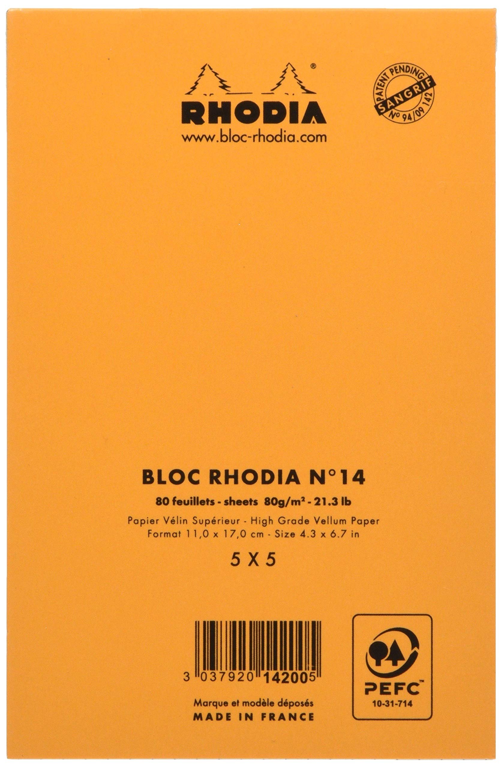 Rhodia cf11200 Notepad, No.11 (A7), 80 Sheets, Grid Ruled, Water Repellent Cover, Perforated, PEFC Certified, Block Rodia No.11 (2.9 x 4.1 inches (7.4 x 10.5 cm), OrangeSize: A7 (7,4 x 10,5 cm)Pages: 160 Paper Weight: 80 g/m2 Rule: 5mm gridWater repellent cover with micro cut processingCountry of Origin: France, PEFC Certified: PEFC/31-44-1450