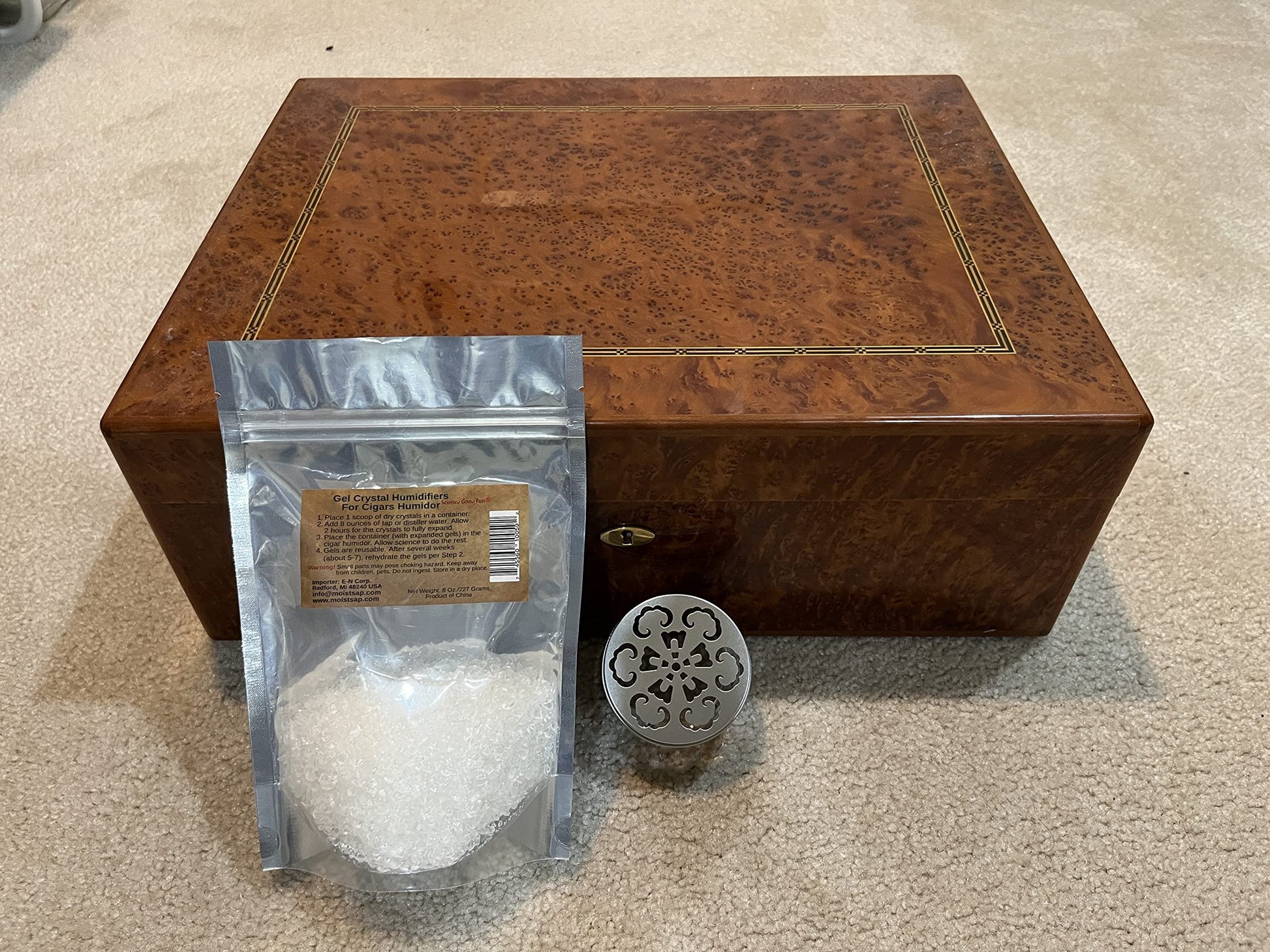 Create Your Own Custom Cigar Humidifier: Harness the Power of 8 Ounce Dry Water-Storing Crystals. Effortlessly Humidify a Diffuser, Ideal for up to 5 Cubic Feet of Space. Quick and Easy Setup: Insert Dry Crystals into the Diffuser and Fill it with Water. Plus, Enjoy an Abundance of Dry Crystals for Convenient Refills. Enhance Your Cigar Experience Today!Bulk Crystal Moisture Gel Humidifying for Cigar Humidor, Cigar caddy, Sodium Polymer humidity control packCustomize your cigar humidifier with 8-ounce dry water-storing crystals.Effortlessly humidify a diffuser designed for spaces up to 5 cubic feet.Simple setup: insert dry crystals into the diffuser and fill with waterEnjoy convenient refills with plenty of dry crystals providedElevate your cigar experience with optimal humidity control.