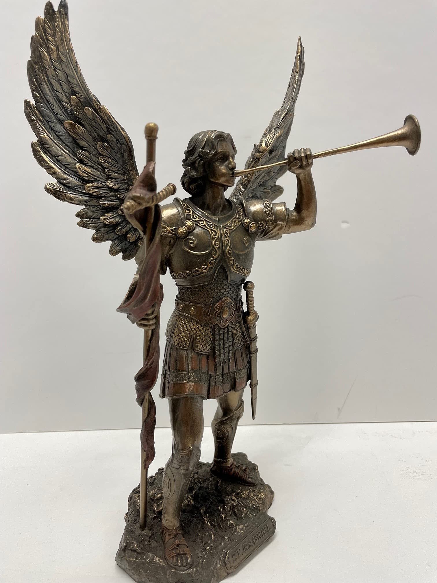 13 Inch Archangel - Saint Gabriel with Horn Cold Cast Bronze Figurine