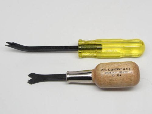 C.S. OSBORNE & CO. STAPLE REMOVER #124 & Lifter #120 1/2 Remover: Manufactured by C.S. Osborne, the leading manufacturer of upholstery tools since 1826. Forged from Alooy tempered steel. Easy to grip, wood handle. This remover has the correct angle for removing staples of any size, from the smallest to the long leg staples and shredded materials. Lifter: Made from top quality grade steel, with electronically hardened working ends. Easy to grip, heavy-duty plastic handle. This lifter has the correct angle for removing staples of any size, from the smallest to the long leg staples and shredded materials.Quality tools from C.S.Osborne.Made in the USA, built to last.