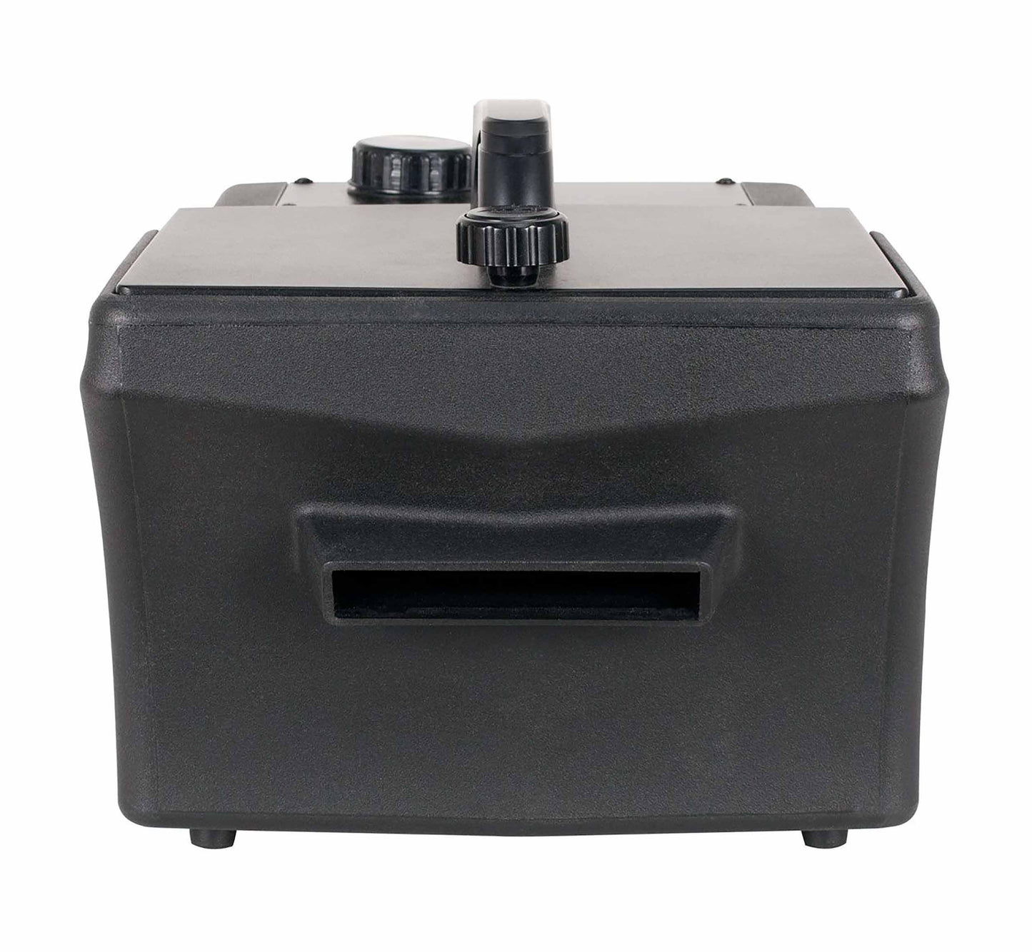 ADJ Products Entour ChillSpecifications: 800W Low-lying fog stays low to the ground – similar to a dry ice effect Ice tank capacity: 2. 5 kg. Fog Fluid tank: 1-liter internal tank Water drainage valve system allows for easy clean-up. Water drains directly into the provided plastic bag.Features: New Heater system for continuous output with no additional warm-up time Fire resistant rugged plastic case Uses standard water-based fog juice and ice cubes Continuous output (run up to one hour at max output continuous) No need for expensive fog chillers, bulky air conditioning units or dry ice New sophisticated electronic temperature control: heats up in 3 minutes and stays heated LED heating indicator system in tank: Red = Heating; Green = Ready to use; Flashing = Fog fluid tank isUses regular ice and includes a wired remote to set up on an auto output you can set the blast time and output or manually trigger this from a remote spotElectrical: Power On/Off switch Locking power connection Multi-voltage operation: AC 120-240V, 50/60Hz Power consumption: 820W maxDimensions / Weight: Dimensions (LxWxH): 16. 5 inch x 11. 69 inch x 10. 75 inch / 420x297x273mm Weight: 17. 25 lbs. / 7. 8 kg.Recommended Fog Juice: ADJ Kool FogPRO TIP #1: Make sure you tighten the knob on the ice hopper all the way down to prevent fog leakage. PRO TIP #2: Make sure the water drainage value is open and drainage bag is lower than the Entour Chill so the melted ice water can flow easily into the bag.