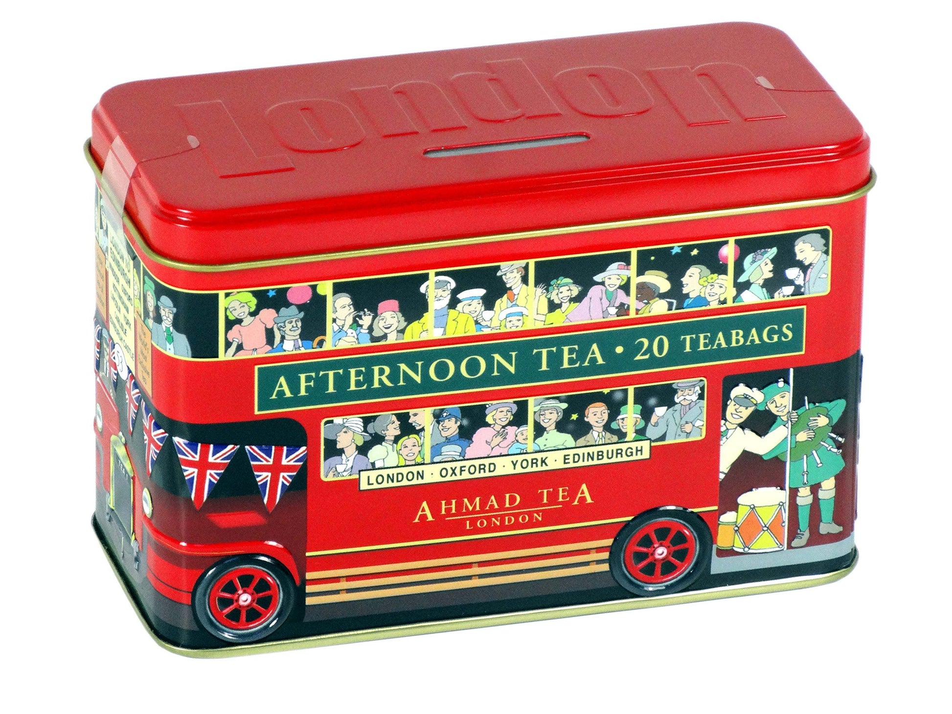 Ahmad Tea London Bus Tin, English Breakfast, 20 Count TinAn exclusive blend of teas, very lightly flavoredIncludes bergamotAhmad Tea is a member of the United Kingdom Tea Council20 count