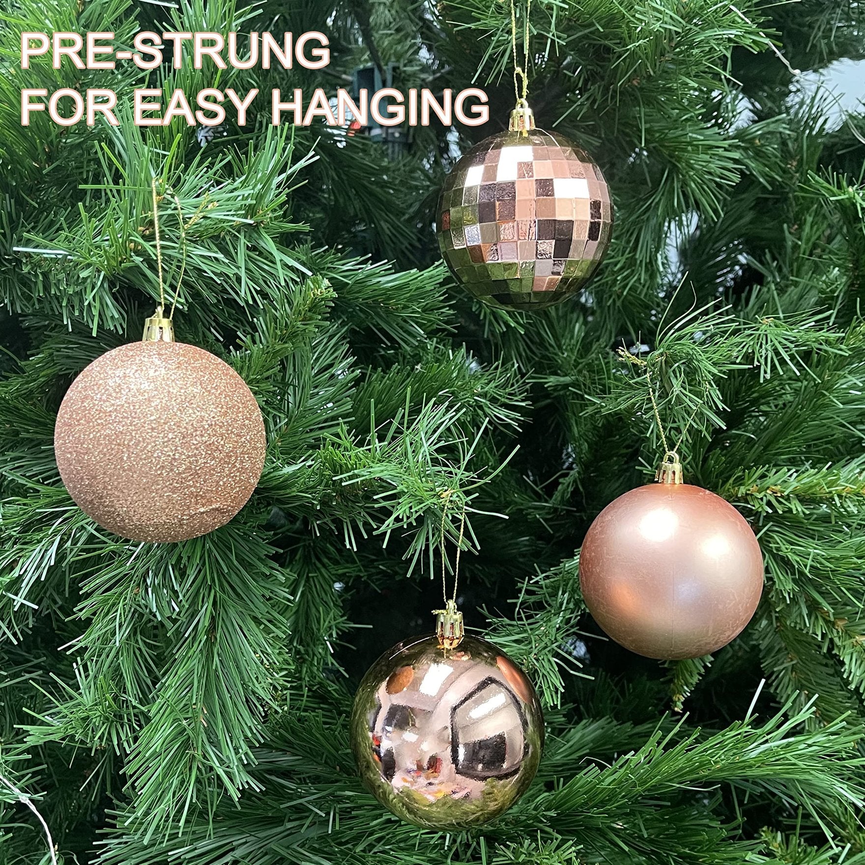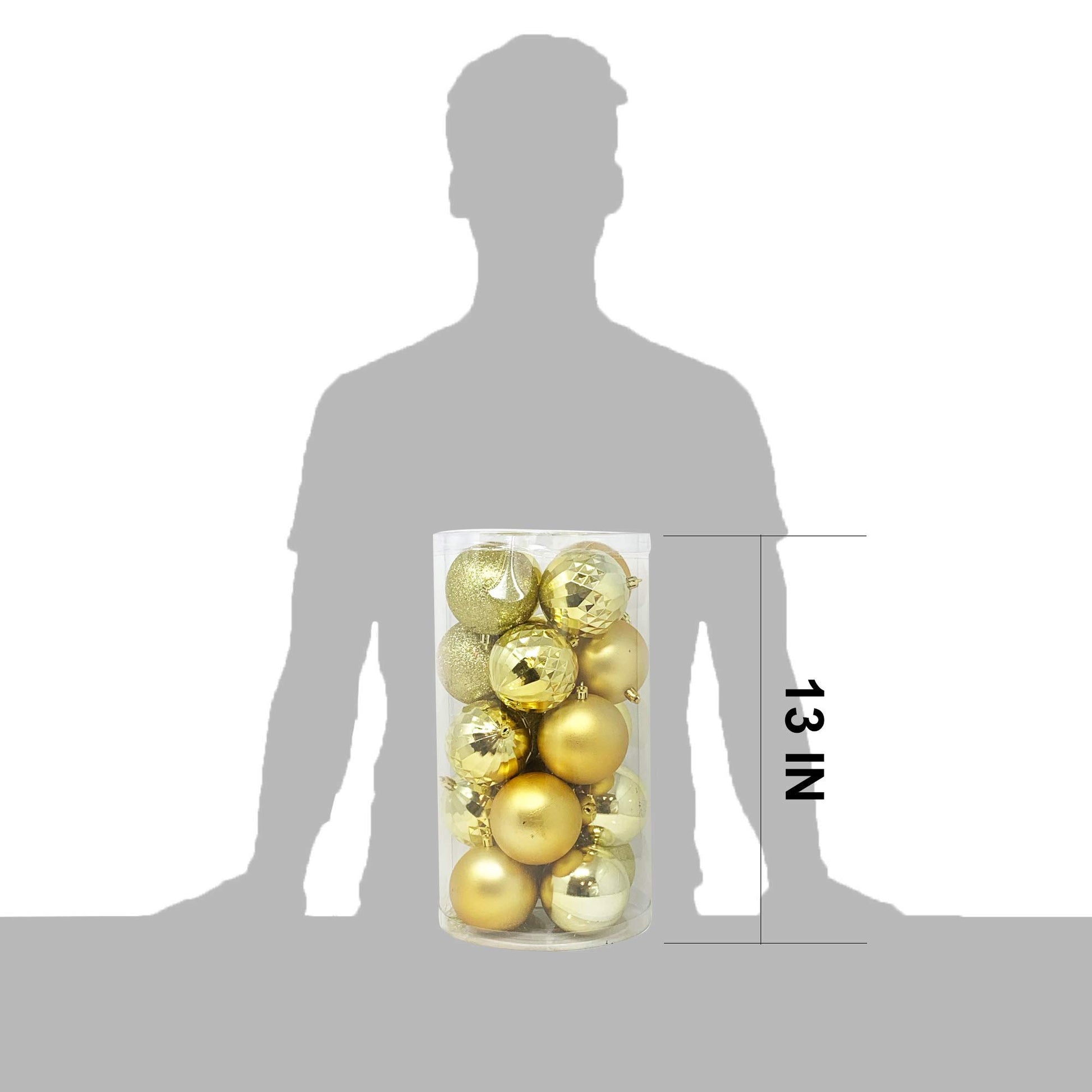 The Allgala Christmas Ornament Balls set includes four different styles and sizes: 36 balls at 2 inches (5 cm), 24 balls at 2.33 inches (6 cm), 20 balls at 3 inches (8 cm), and 12 foam balls at 3 inches. These ornaments come in 15 different colors and are shatterproof, making them ideal for safe and durable Christmas tree decoration. This variety in size and color provides flexibility to create a vibrant and festive tree décor. Perfect for holiday decorating with a mix of elegance and practicality.Contains 20 ornament balls, measures 3.11" (8 cm) in diameter. 4 differeent style of same color with shiny, matte, glitter and Diamond pattern.Shatterproof: made of plastic for peace of mind; no worries about drop and break into piecesValue Pack, enough to decorate 4-5' trees. General tip: Multiply footage of the tree by 5, that's how much ornaments you will need. E.g. 7" tree needs 35-40, buy 2 pack and you will be all set. Add more for fuller effect.Many popular colors: available in 20 pack 3 inch large xmas balls, mix and match or go will solid color theme when buy multiple package.Pre-strung: forget about the tedious work of stringing every balls; all balls are pre-strung and ready to hang on the tree branches or any other holiday objects