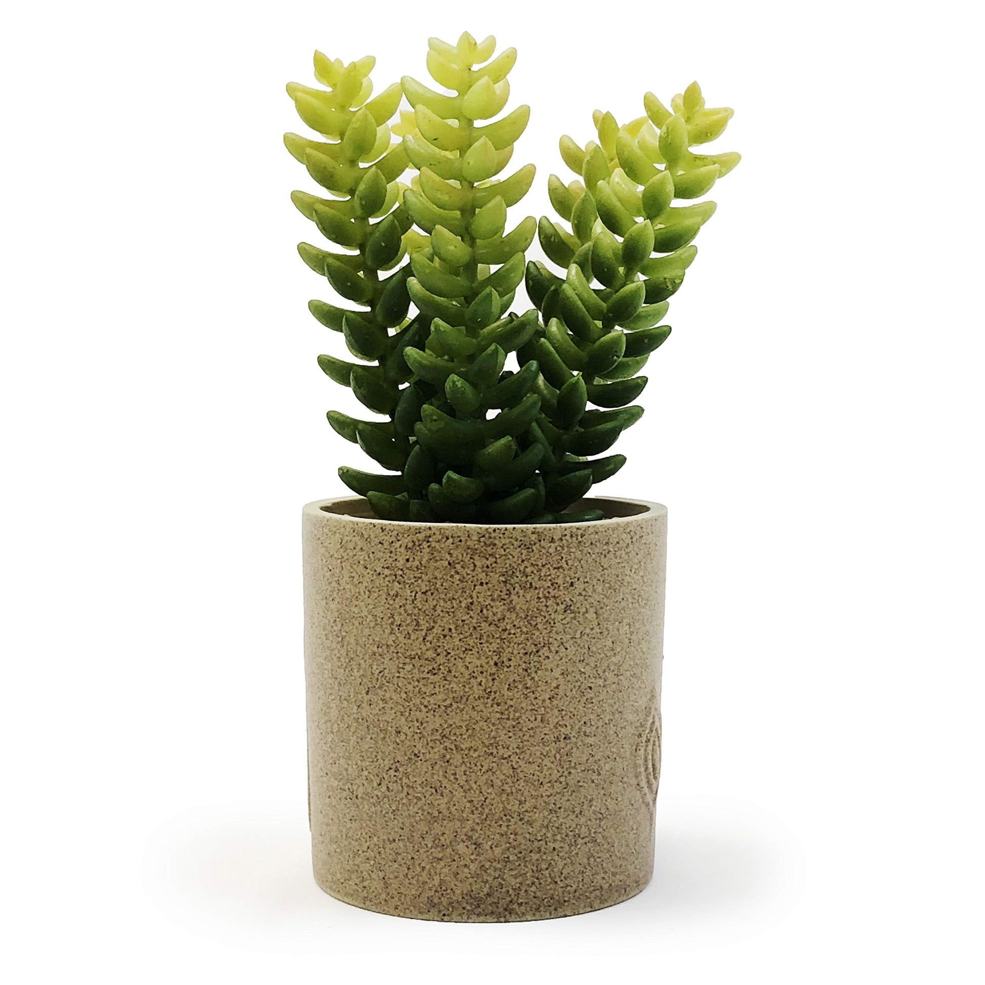 allgala Small Desktop Artificial Succulent Plant Indoor and Outdoor Indoor Fake Plants with Natural Clay PotStylish & Versatile – Comes in a neutral natural clay pot that complements any décor, from modern to rustic.Lifelike & Realistic – The artificial succulent looks so real you’ll be tempted to touch and pinch itFull & Well-Designed – The pot is filled and secured with small pebble stones, ensuring a natural, no-gap look from every angleDimension: 7.5 Inch Heightx 3 Inch DiameterPerfect for Any Space – Ideal for desktops, shelves, countertops, window sills, and mantels, adding greenery anywhere.