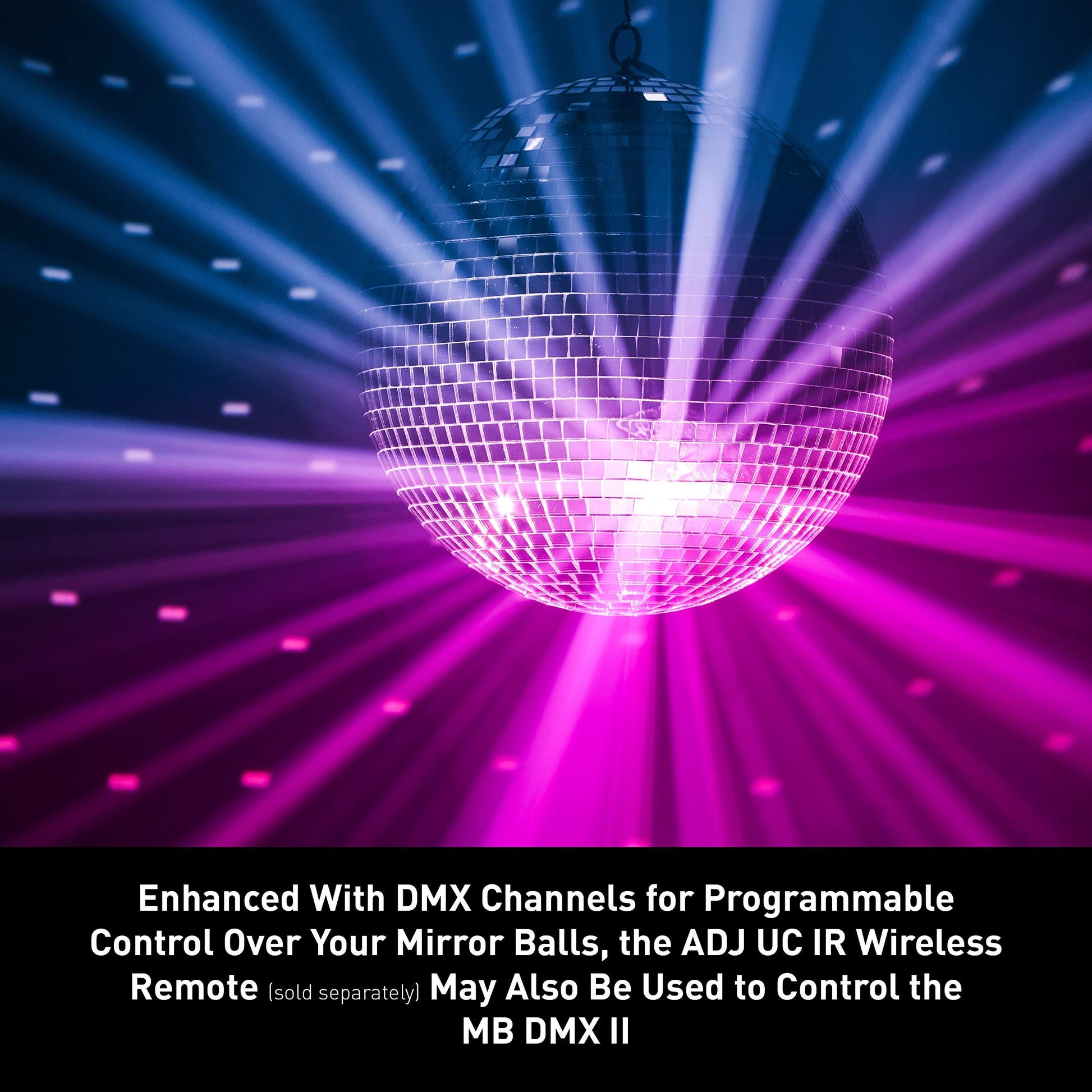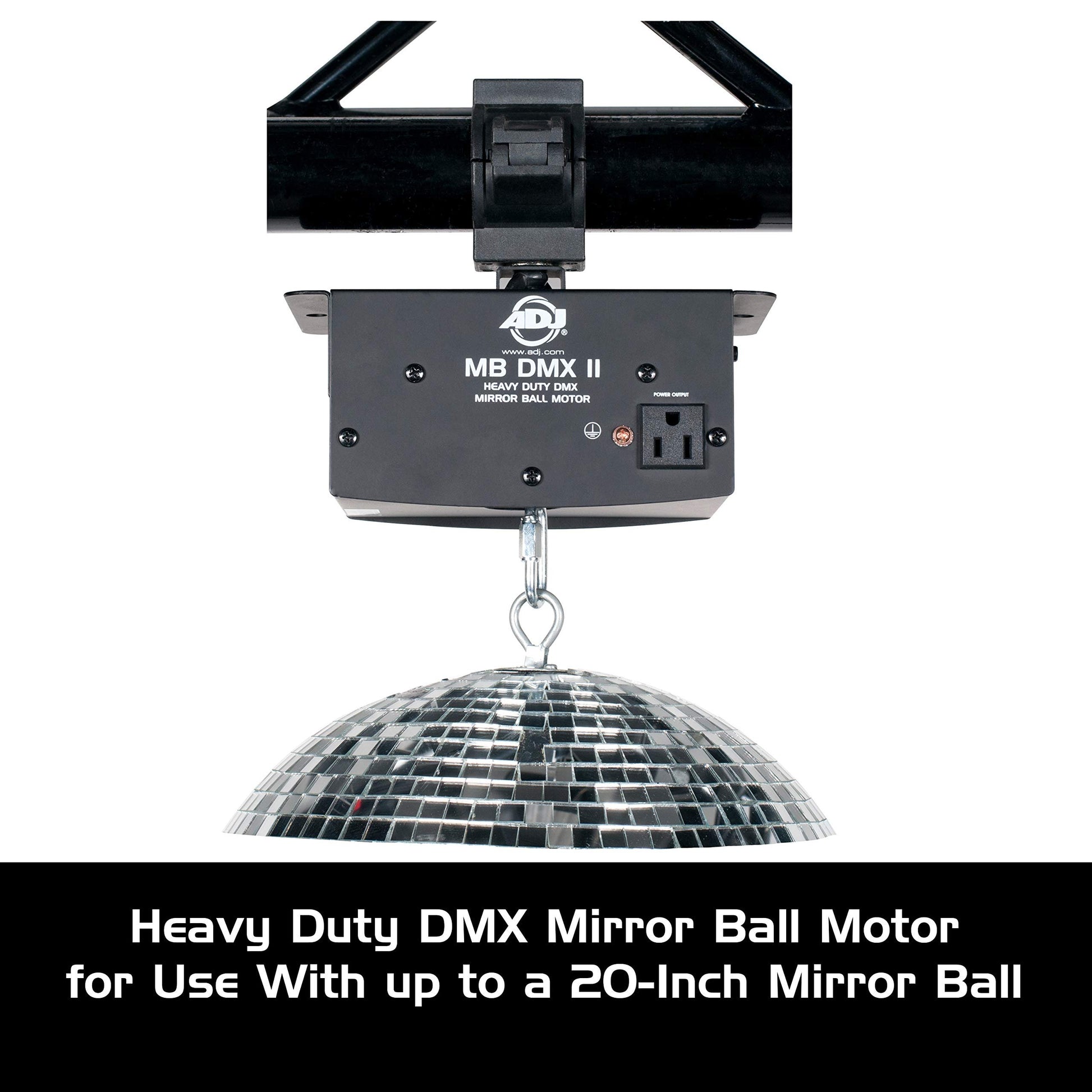 American DJ DMX controllable heavy duty mirror ball motor 20 inch mirror ball max also has on off switchable outlet for pinspots