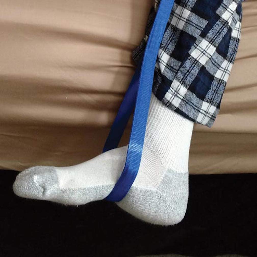 This handy accessory helps with hip to foot positioning. The blue nylon webbing has a springy stainless steel spine so that the leg lifter can be held straignt out for the perfect positioning. The foot loop is extra large to fit over casts and splints while the flexible and padded wrist strap acts as a stress-free hand hold. The 26" overall length is perfect for use laying in bed or sitting in a chair. Ideal for use by those recovering from hip/knee surgery or a sprained/broken ankle. The Leg Lifter Deluxe can be coiled for easy storage in bedside drawer, auto glove box, or suitcase.Helps with hip to foot positioning when laying in bed or sitting in a chair; Springy stainless steel spine so that the leg lifter can be held straight out for the perfect positioningLeg Lifter Deluxe can be coiled for easy storage in bedside drawer, auto glove box, or suitcaseFoot loop (7½" wide and 7½" tall) is extra large to fit over casts and splintsFlexible and padded wrist strap acts as stress-free hand hold; Blue nylon webbing covering - no exposed metalLightweight at 4 oz. and 26” long