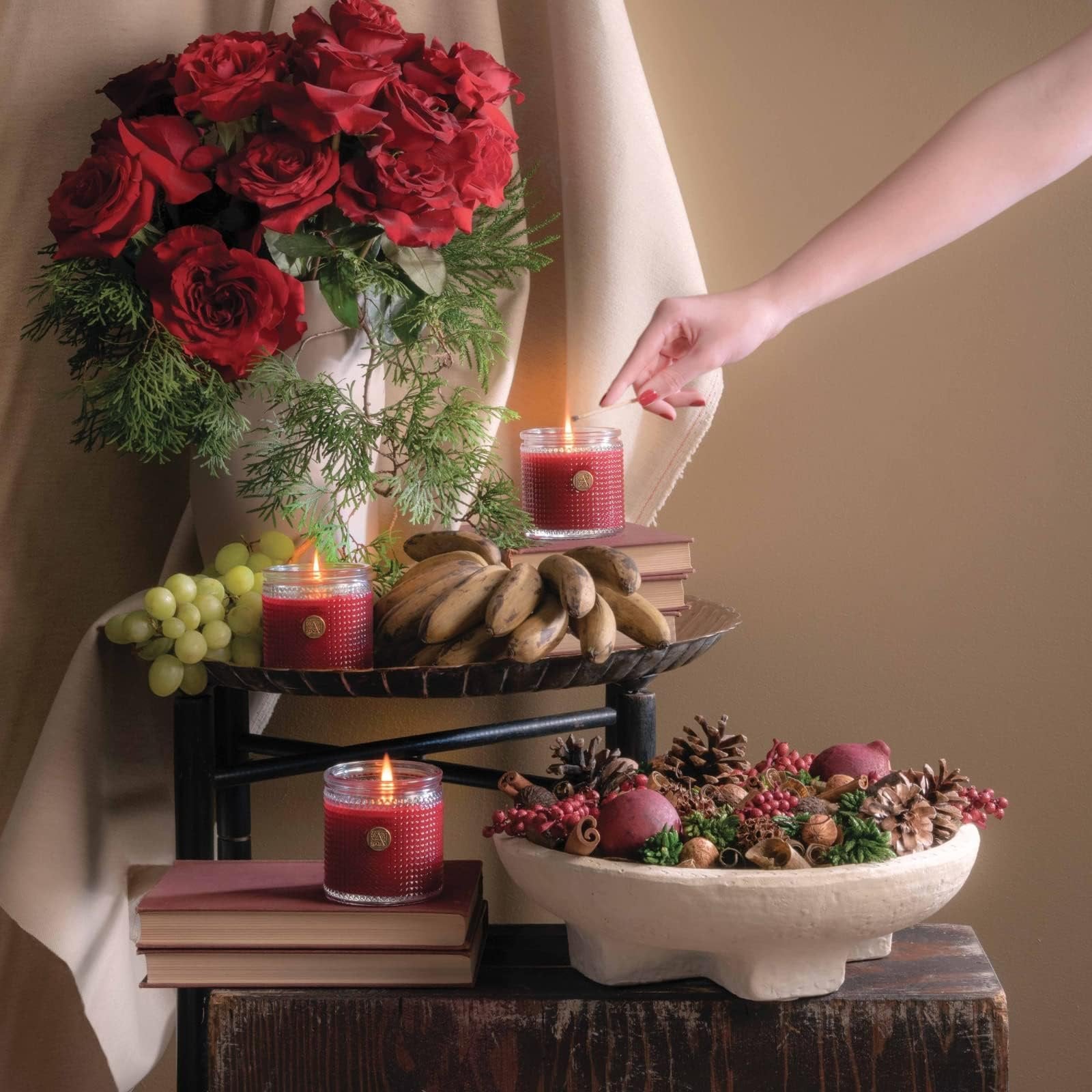 The Smell of Christmas is our signature fragrance with captivating citrus and spice with a warm blend of natural botanicals. Our candles are all hand-poured in Arkansas. Made with a proprietary wax blend, ethically sourced containers and cotton wicks. Light one of these aromatic candles and transport yourself to a memory or emotion. Love Christmas? Aromatique's Textured Glass Candle has a unique fragrance that makes you feel like you're walking down the street during this festive holiday.The Aromatique Smell of Christmas Textured Glass Candle Set of 2 is a beautiful, long lasting decor gift set that makes the perfect addition to your home or as a gift! An impeccable gift for any occasion, our exclusive scented candles are carefully crafted using the finest ingredients to deliver a long lasting aroma that is gentle on your home. Make your home smell like the holidays with our Aromatique Smell of Christmas Textured Glass Candles!The Smell of Christmas is our signature fragrance with captivating citrus and spice with a warm blend of natural botanicals. Our candles are all hand-poured in Arkansas. Made with a proprietary wax blend, ethically sourced containers and cotton wicks. Light one of these aromatic candles and transport yourself to a memory or emotion. Love Christmas? Aromatique's Textured Glass Candle has a unique fragrance that makes you feel like you're walking down the street during this festive holiday.Our decorative glass candles are a perfect gift for Christmas, a wedding or a new home. This lovely set of two Aromatique Smell of Christmas Textured Glass Candles will add a luxurious touch to your home this holiday season. Our fragrant candles will fill your home with a luxurious aroma and create an ambience that's perfect for all occasions.Aromatique Smell of Christmas Textured Glass Candles are the perfect addition to your home decor. Our beautiful candle is a show stopper, and smells delightful with our spicy exotic blend of scents! Soft, soothingly fragrant, and intensely beautiful. These candles are a perfect blend of artistry, sophistication and elegance with a hint of romance. The Textured Glass design brings elegance to any dinner table or party favor and making the perfect gift for someone special.Give the gift of a cozy winter night with our Aromatique Smell of Christmas Textured Glass Candle Set of 2. Create a beautiful and sophisticated ambience with this luxurious Smell of Christmas Textured Glass Candle Set. It is crafted from a strong and sturdy glass, measuring approximately 3.5 inches in height with a 40 hour burn. The long-lasting fragrance will make your home smell festive and inviting. This holiday gift will be sure to bring a smile to your loved ones face this season.