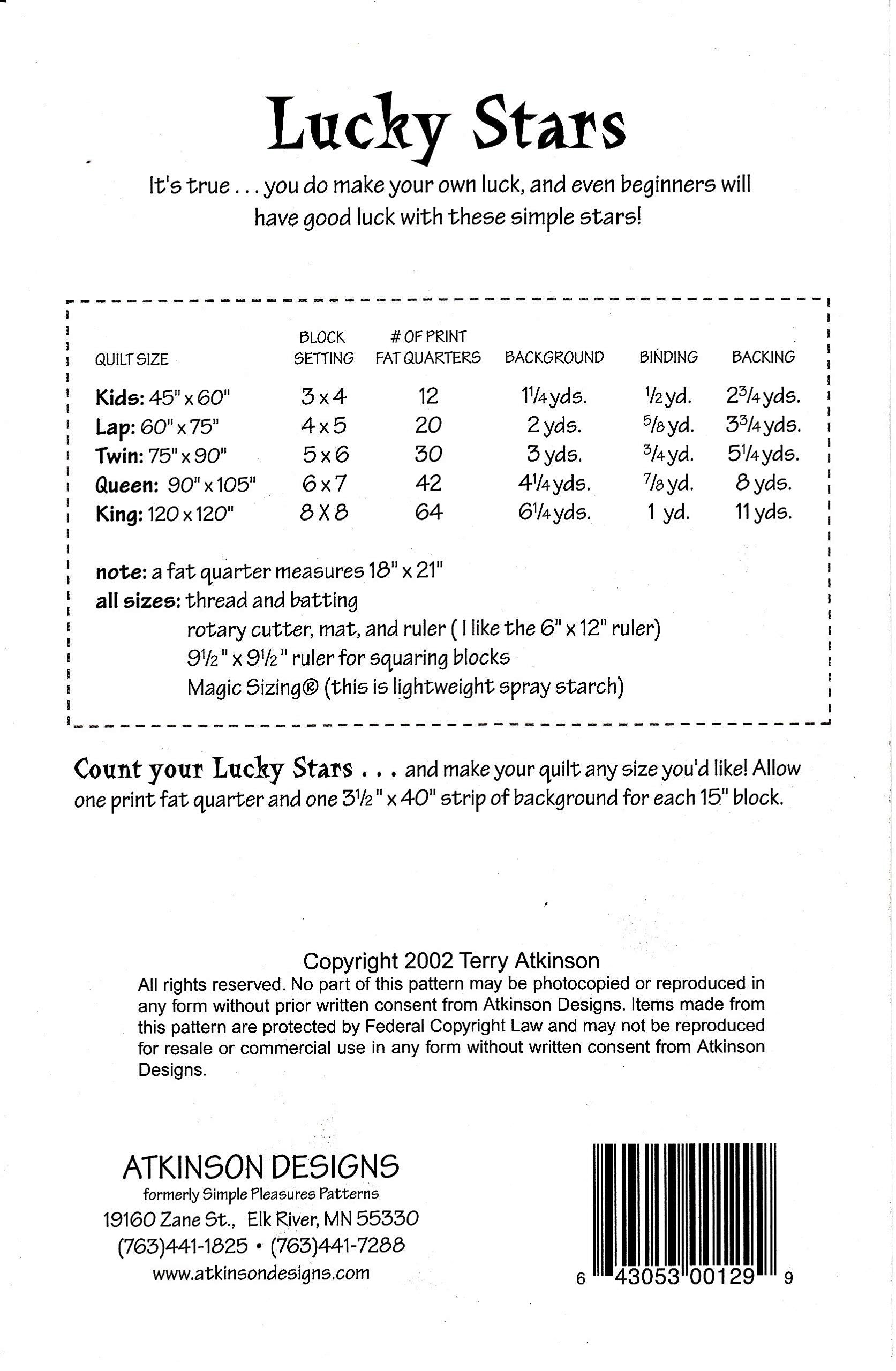 Atkinson Designs Pattern ATK-129 ~ Lucky Stars Fat Quarter Quilt