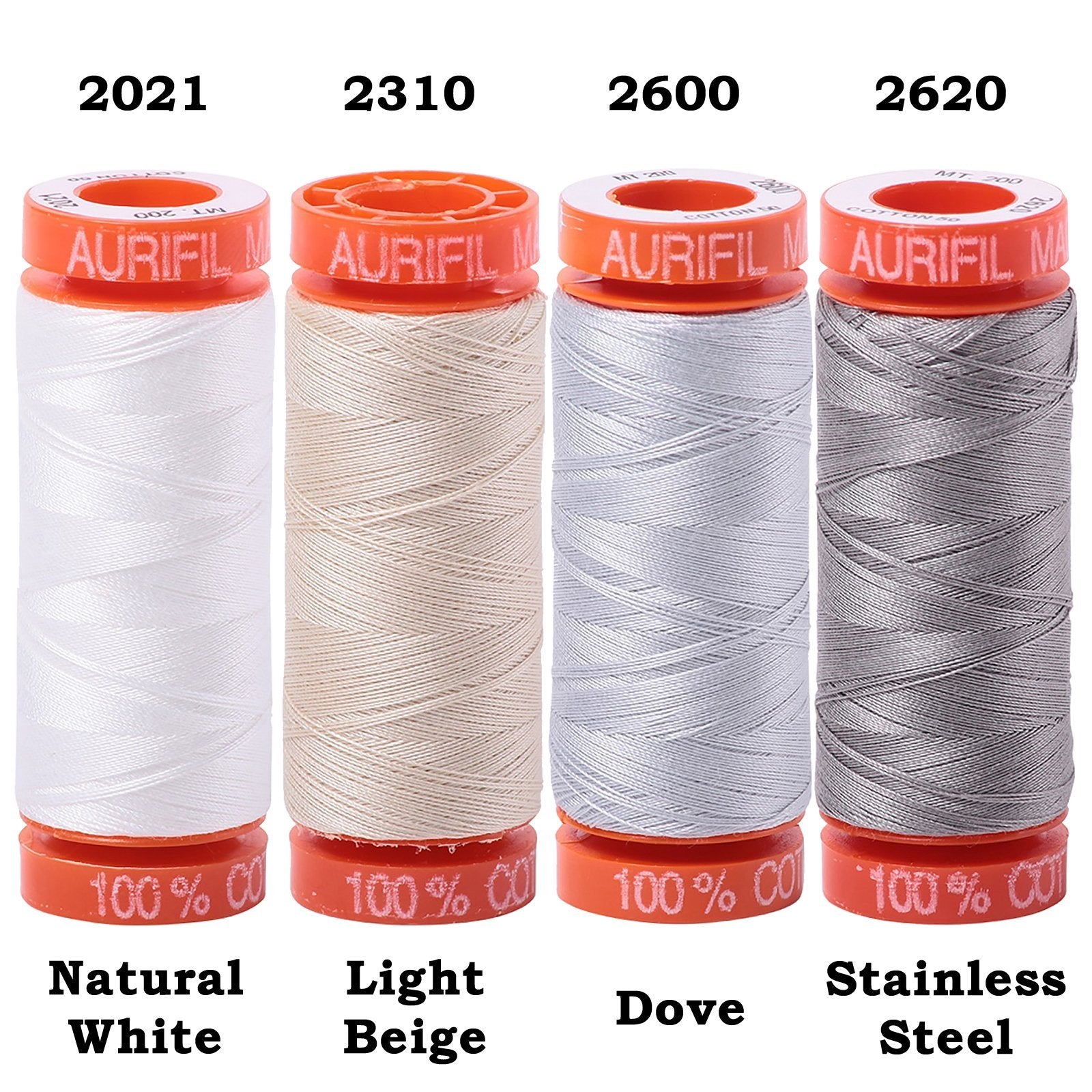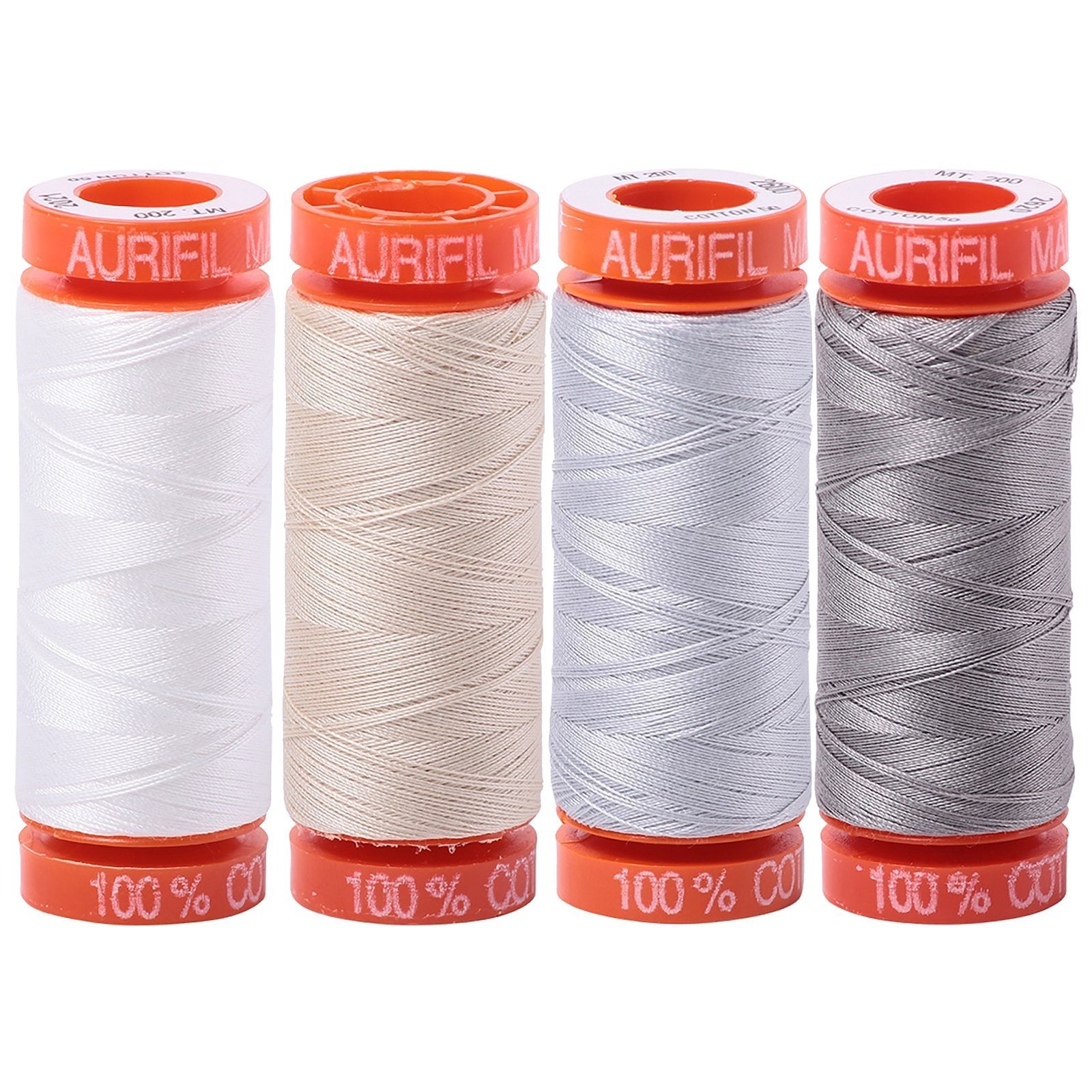 Aurifil (4) 220 YD Spools 50 wt Quilter's Choice Set of Essential Piecing Thread Colors Bundle of 4 Spools