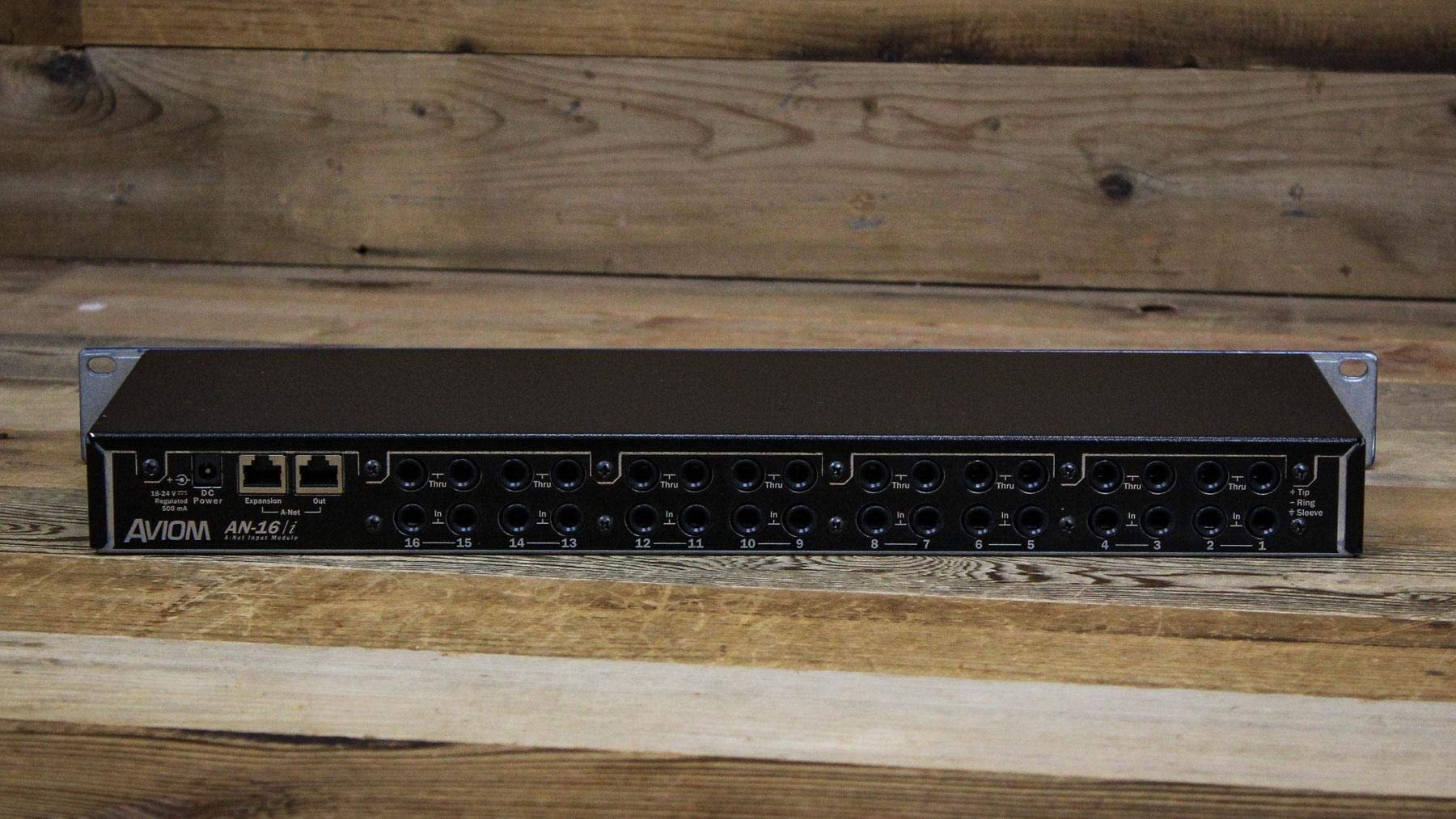 The AN-16/i Input Module is a single rack space unit that serves as the A/D input for the digital snake. The AN-16/i can also be used as the analog input module for a personal monitoring system. It converts sixteen line level analog audio channels into uncompressed, full bandwidth digital data transmitted via Aviom's proprietary A-Net protocol. All inputs are balanced 1/4" TRS jacks. There is a Thru jack available for each input, which allows the AN-16/i Input Module to be inserted into an existing audio signal path.On the front panel, the AN-16/i has a four-position gain switch (+22, +4, 0, and -10dB), stereo channel link switches, and signal present and clip LEDs.The rear panel of the AN-16/i has two rows of sixteen 1/4" TRS jacks for analog audio Input and Thru. For system network connections, there is an A-Net Out jack and an A-Net Expansion jack. The A-Net Expansion jack allows multiple AN-16 units to be combined. The modular system is easily reconfigured at a moments notice.Features: 16 x balanced 1/4" TRS audio inputs (Euroblock connectors coming soon) 16 x balanced Thru connectors A-Net Out and A-Net Expansion network connections (Cat-5) Stereo Link switches for each channel pair Four-position gain switches (+22, +4, 0, -10dB) 1U rack enclosure Can be used as an input module for the A-16 Personal Monitor Mixing System Includes power supply and Manual #html-body [data-pb-style="632018FCD0ADE"]{justify-content: flex-start; display: flex; flex-direction: column; background-position: left top; background-size: cover; background-repeat: no-repeat; background-attachment: scroll; border-style: none; border-width: 1px; border-radius: 0px; margin: 0px 0px 10px; padding: 10px;}#html-body [data-pb-style="632018FCD0AEA"]{border-style: none; border-width: 1px; border-radius: 0px; margin: 0px; padding: 0px;}#html-body [data-pb-style="632018FCD0AF1"]{color: #41362f;}#html-body [data-pb-style="632018FCD0AF7"]{color: #41362f;}#html-body [data-pb-style="632018FCD0AF