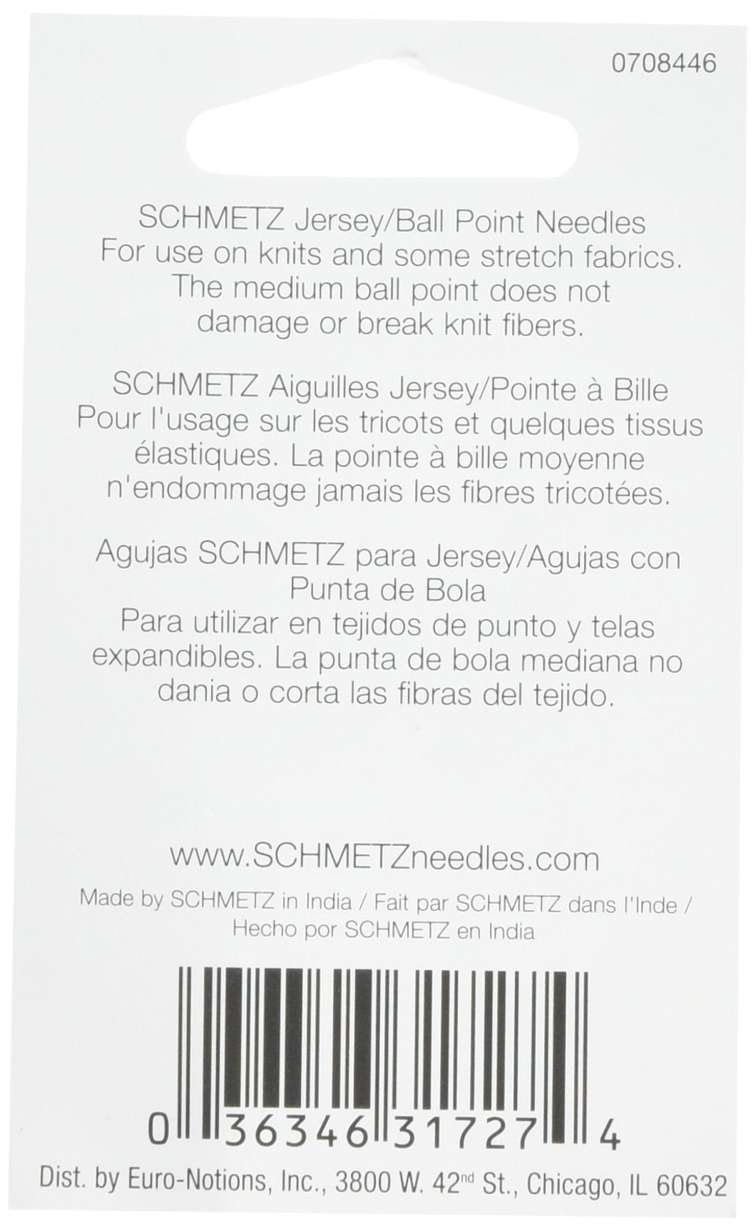 Made especially for sewing on knits; the medium ball point does not damage or break knitted fibers. Also works with some stretch fabrics.