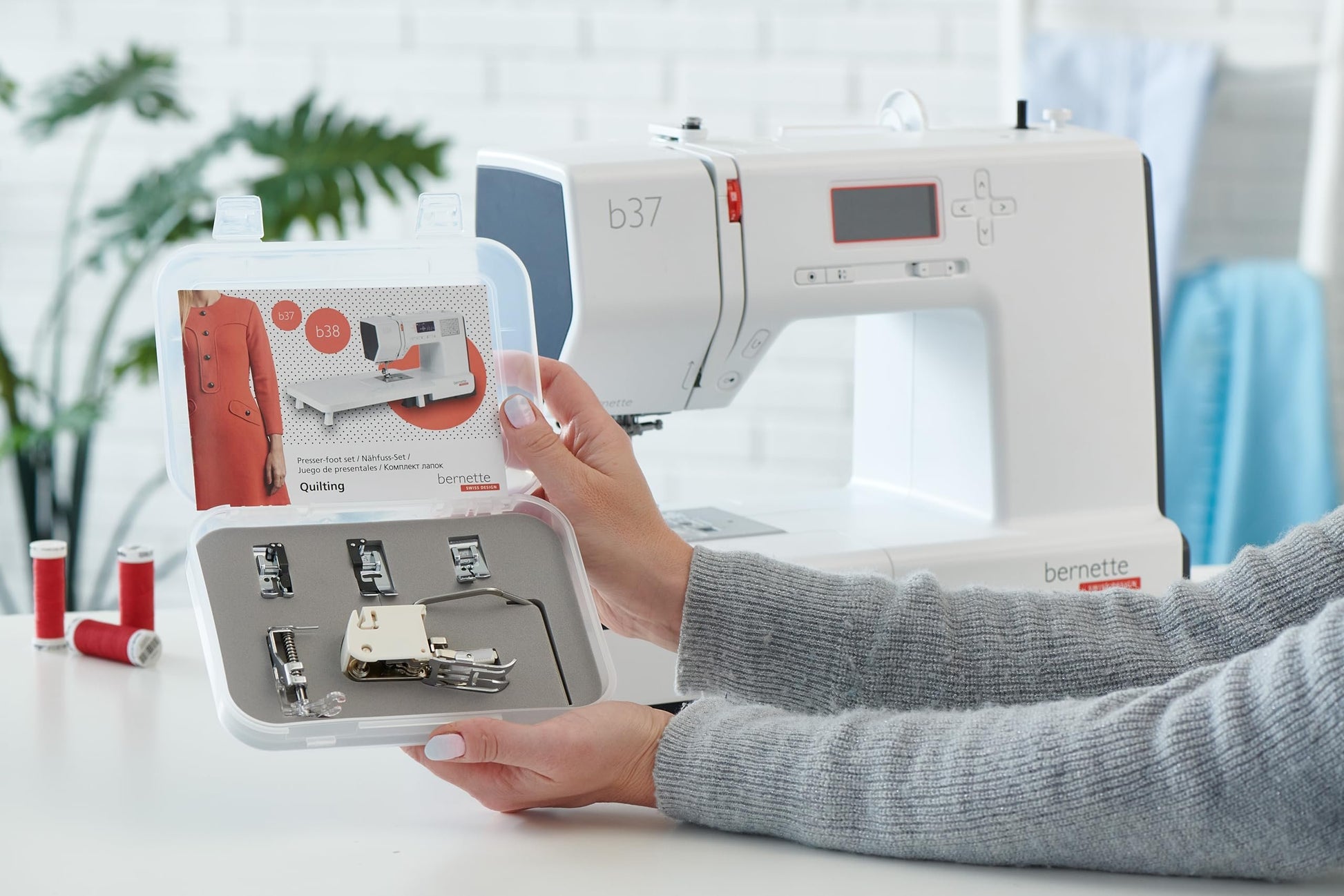 FOR B37 AND B38 QUILTING: Designed for precision and ease, this 6-piece Bernette quilting kit includes essential presser feet for B37 and B38 sewing machines. Perfect for quilting, embroidery kit use, and heavy-duty sewing, it supports home crafters and professionals with tools like the walking foot, patchwork foot, threader, and piercing accessories.