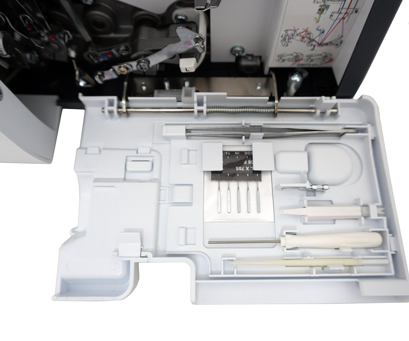 PORTABLE AND VERSATILE: This portable serger and coverstitch machine from Bernette is engineered for professional stitching with heavy-duty performance. With 23 stitches and features like a manual threader, presser foot adjustment, piercing capability, and extension table compatibility, it includes all essential supplies—from bobbins and winder to hoop and quilting accessories—for any sewing or embroidery task.
