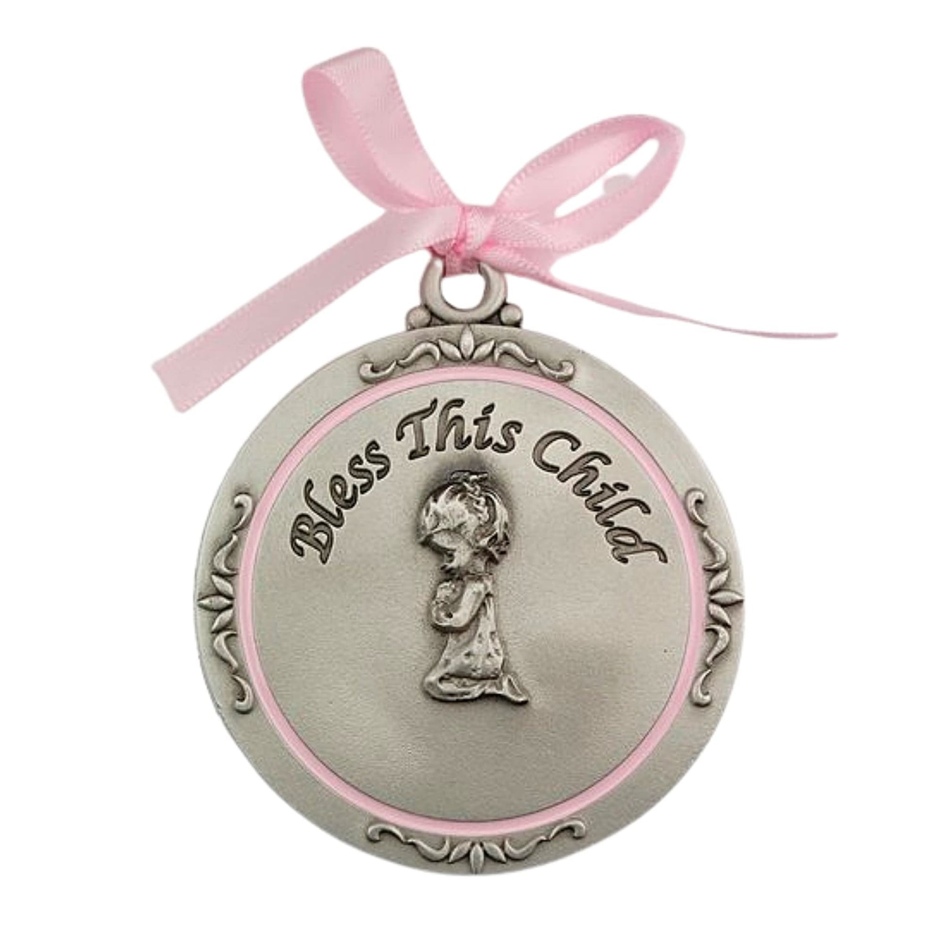 Bless this child crib medal Girl Crib Medal pink ribbon Round 2 3/4 great gift baby shower by "McVan, Inc."