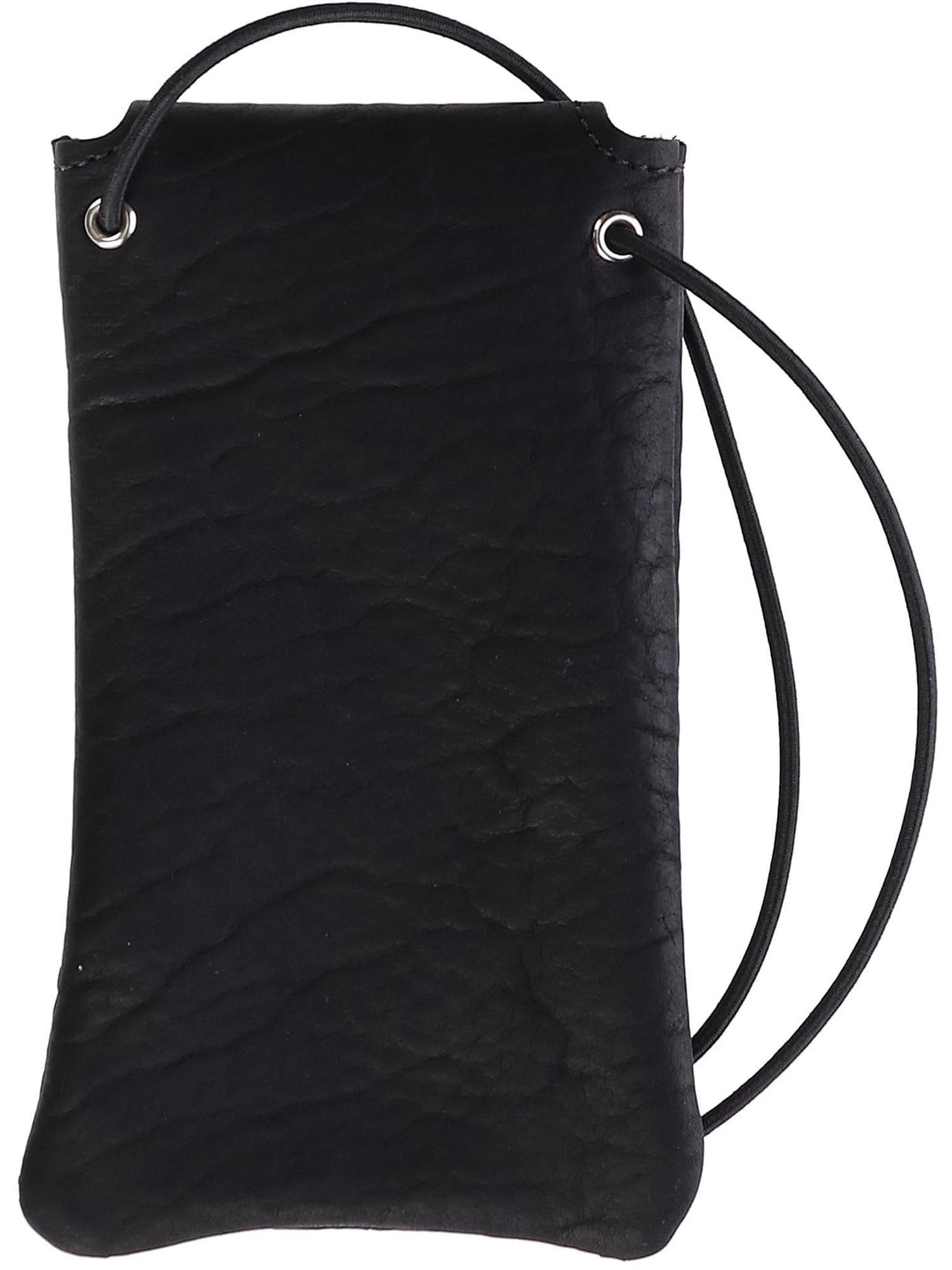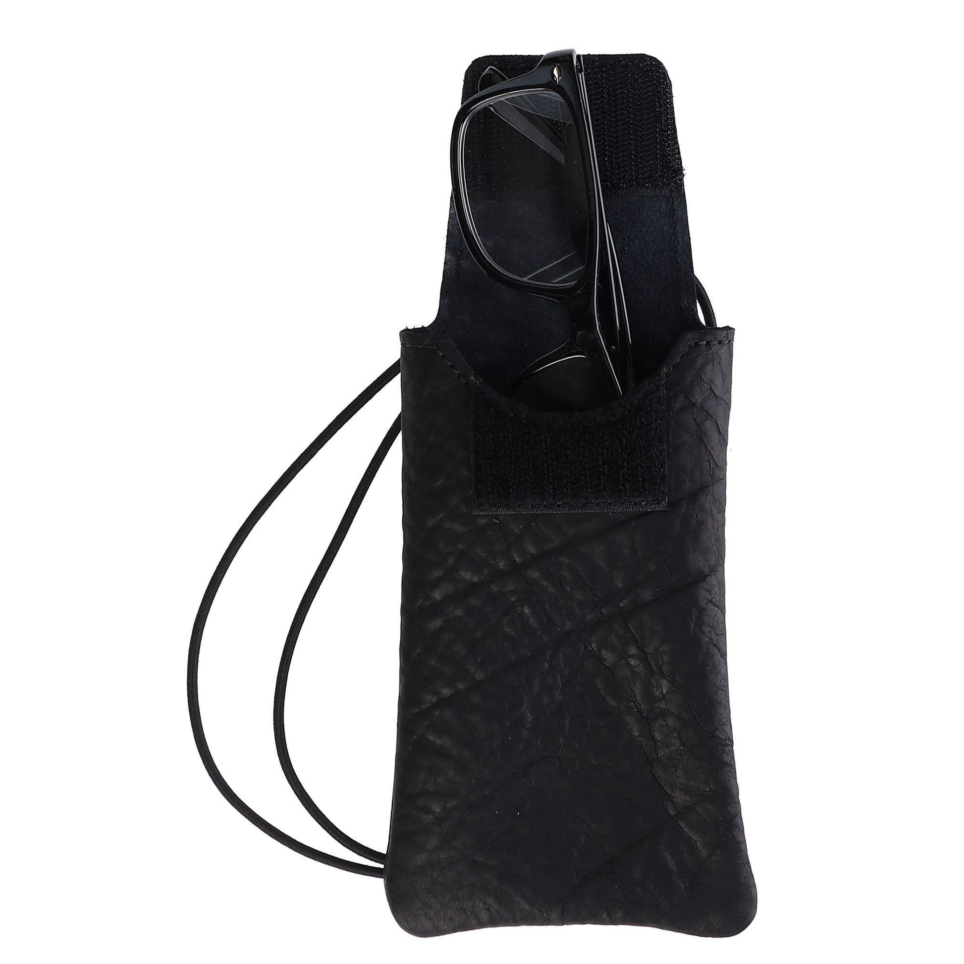 Boston Leather Textured Bison Leather Eyeglass Case with Neck String, Black