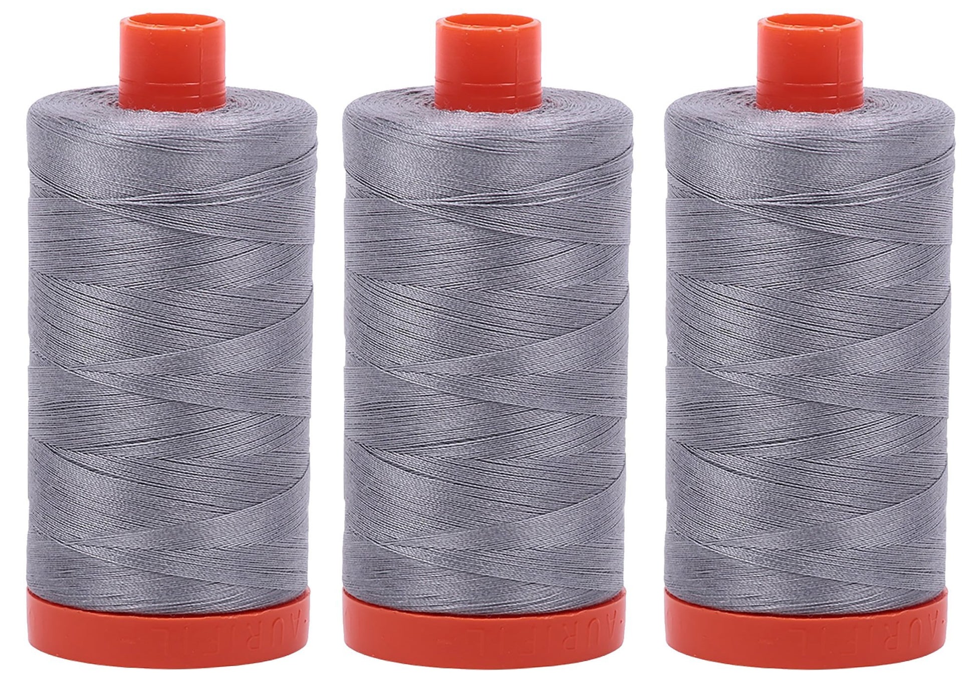 Bundle of 3 Large 1422 Yard Spools of Aurifil 50wt Egyptian Cotton Thread, Color: Grey,No. A1050-2605