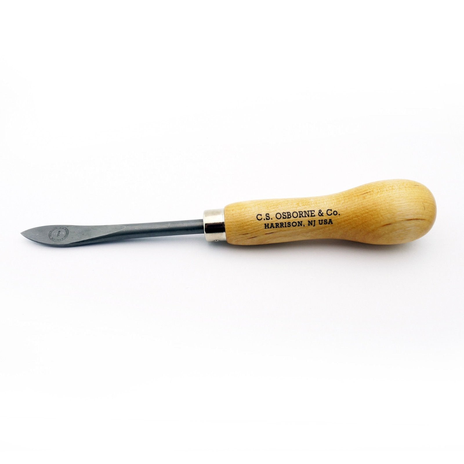 C.S. Osborne Staple And Tack Remover. Polished and forged steel blade. Hardwood handle. Nickel plated ferrule. A European favorite. Blade length : 3-5/8" Overall length : 8"