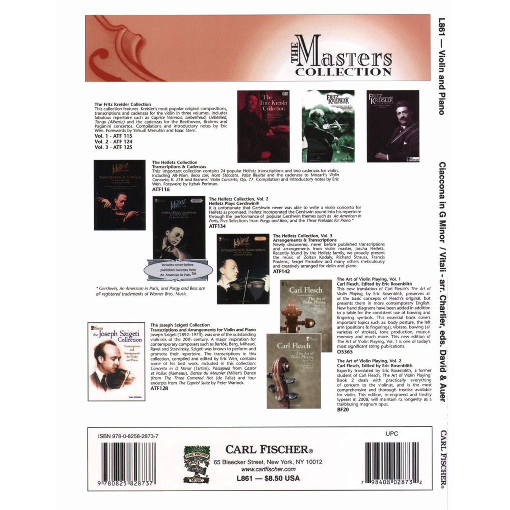 Chaconne in G Minor, for violin and piano; Tomaso Antonio Vitali (Carl Fischer)