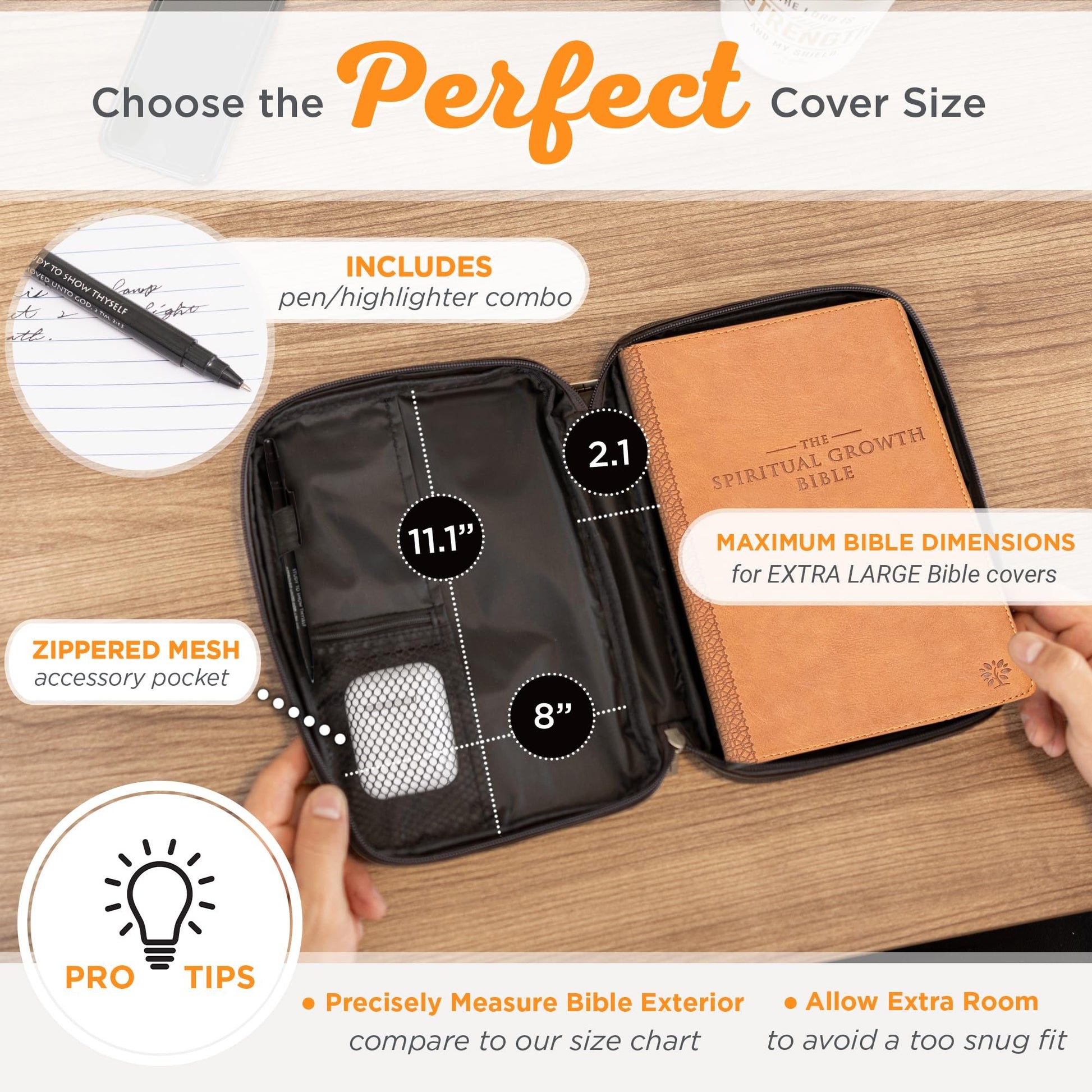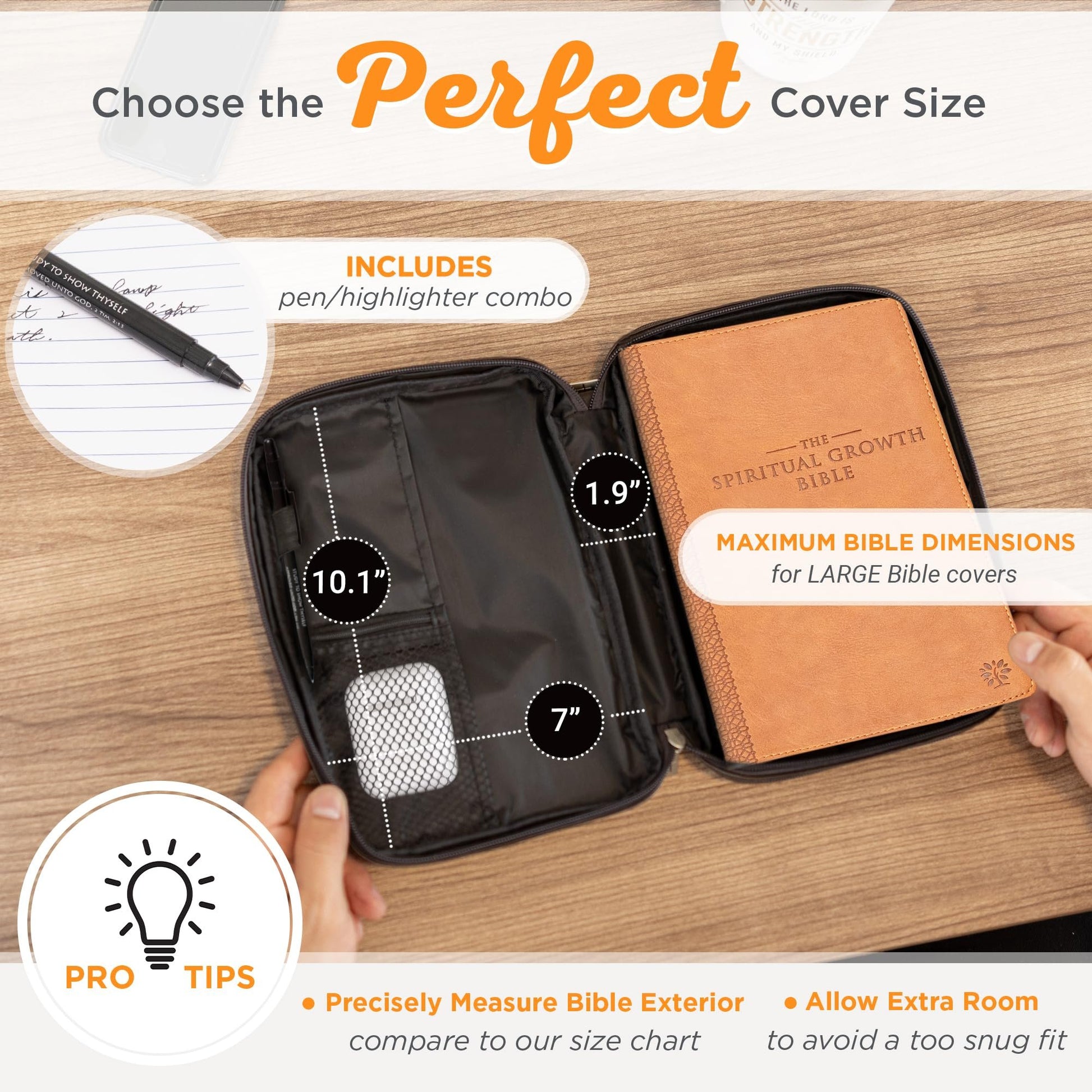 Christian Art Gifts Brown Faux Leather Bible Cover for Men and Women | Ichthus Jesus Fish Emblem Zippered Two-Fold Organizer Case for Bible or Book w/Handle Small ThinlineExcellent Bible Protection. Hold your Bible securely with this stylish Book cover for Bible that has a cross engraved zipper pull and is easy to carry or hold with a convenient carry handle on the Bible case.Essential Storage: Features include slip pockets with pen loops to secure your pen or highlighter when not in use making this a convenient way to carry God’s word to church or Bible study. A card organizer, zipped mesh pocket, slip pocket, and a notepad slot. A notepad and pen/marker are included.For Best Fit: Please note that dimensions given in Product Specifications are for shipping purposes and reflect the exterior of product. To select correct size please measure your Bible exactly and compare to information given in the product description.Handsome Bible Organizer Book Cover: The luxurious cover of this faux leather bookcover is made from a man-made material that is designed to look, feel, and wear like real leather that is durable, easy to clean and will withstand daily wear and tear. Accented with a metal Ichthus fish emblem badge.Faith Hope & Love: Christian Art Gifts offer a wide variety of Scripture print items. From Bible Covers, Coloring Books, Journaling Bibles, Journals, and Devotional Books, the company strives to bring the best quality products with a special message of hope and encouragement on each one.