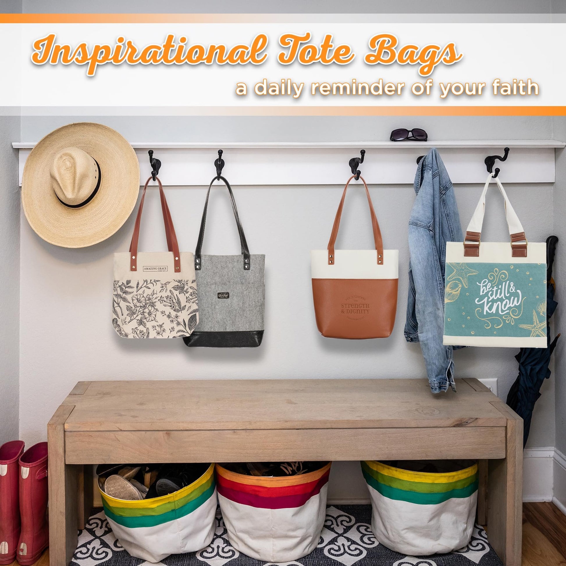 Christian Art Gifts Felt and Faux Leather Fashion Bible Cover Tote Bag with Inspirational Scripture, One Size