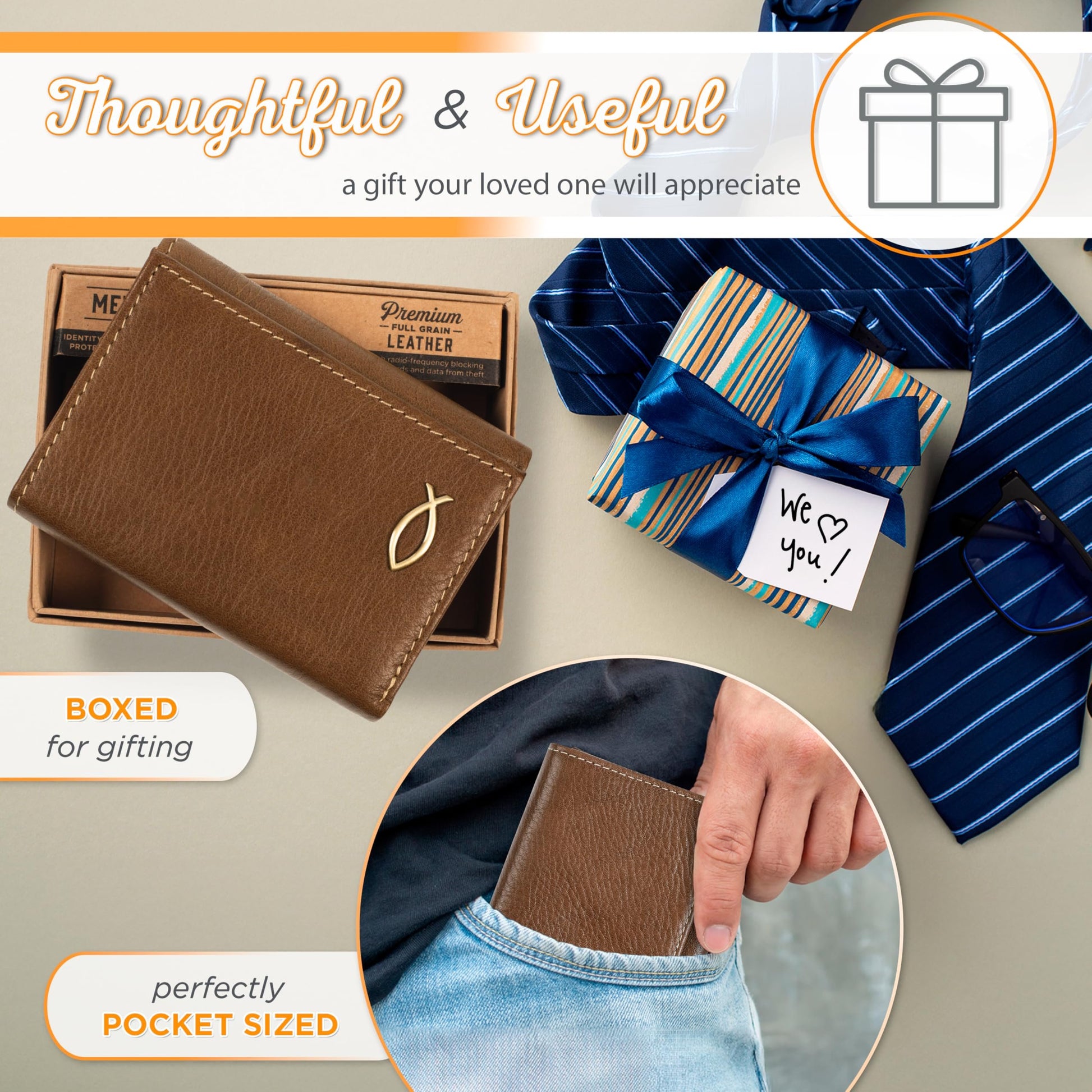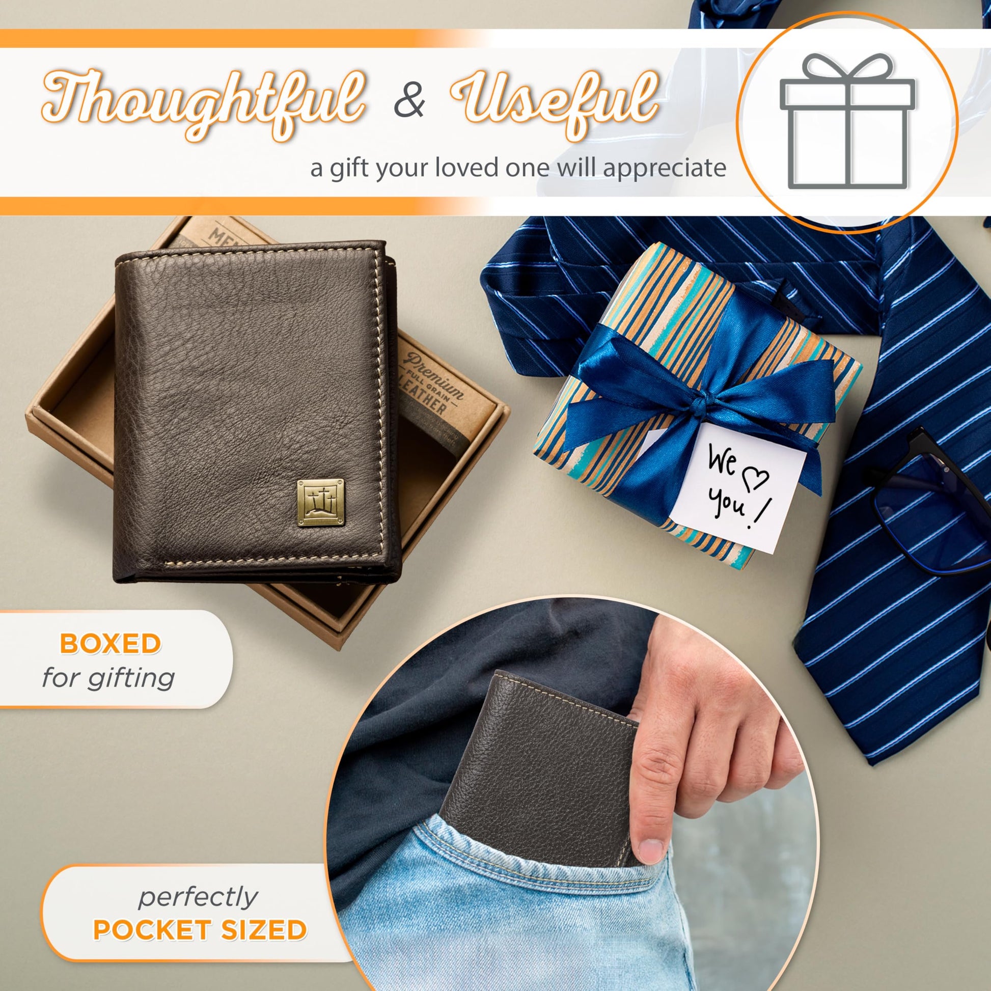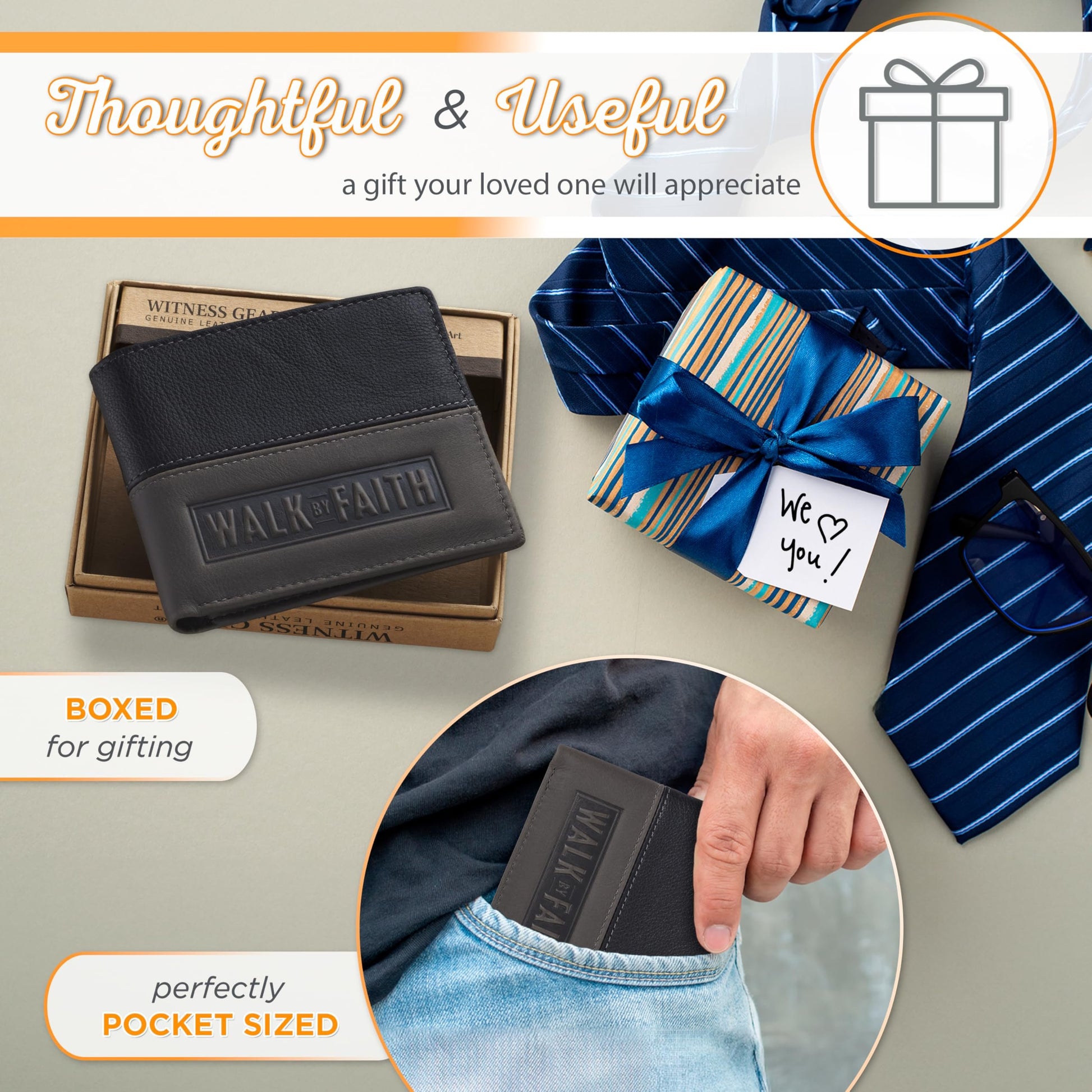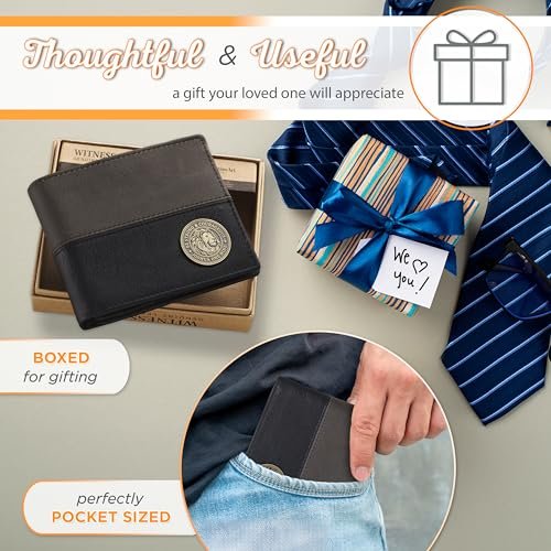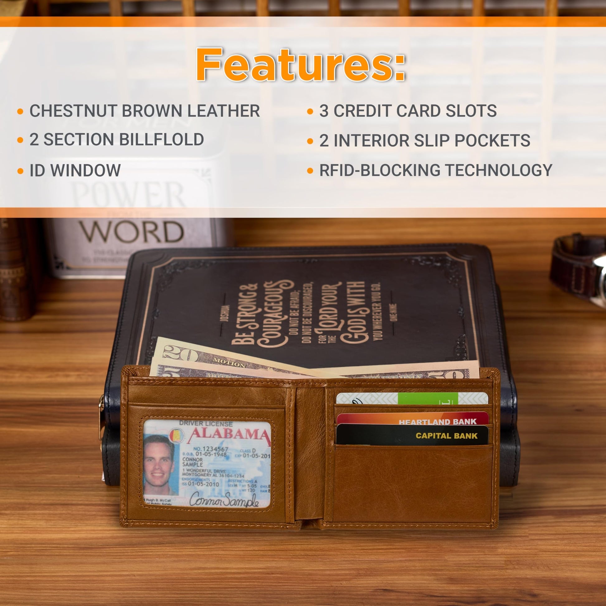Christian Art Gifts Genuine Premium Full Grain Leather RFID Blocking Silver Engraved Cross Wallet for Men: Multi Pocket Billfold w/Removable ID Window Accessory for Credit Cards, Bills, Photos, BlackPremium Full-Grain Leather Mens Christian Wallet: The sturdy bifold design features two nylon interior sections to store bills, 5 card/ID slots, 4 multipurpose slip pockets for notes and coupons, and an easy-access photo identification window. The large, roomy front slip pocket features a removable ID window that contains an additional 3 card slots.RFID Blocking Technology: The handsome wallet doesn't just look stylish, but it also protects your credit card and identity information to ensure your most sensitive information and data stays safe and secure from theft. Keep your money, change and other small valuables safe as you travel to work, school, church and more.Genuine Quality Leather Resists Wear & Tear: The tightly top stitched minimalist design is constructed with the traveling man in mind. It's sleek, slim, and portable and can be easily slipped into back and front pockets or your favorite jeans or dress pants, suit jacket pocket, or coat pocket.Scripture Accessory for Easy Gifting: The wallet is decorated with a small, stylish engraed silver cross emblem in the bottom right corner affirming you of your faith. This faith-inspired designs adds a soft, elegant touch to the wallet's smooth premium leather feel.Faith, Hope, & Love: Christian Art Gifts offers a wide variety of faith-based items for all occasions. From Bible Covers, Coloring Books, Journaling Bibles, Journals, Planners and Devotional Books, the company strives to bring quality products with a special message of hope and encouragement on each one.
