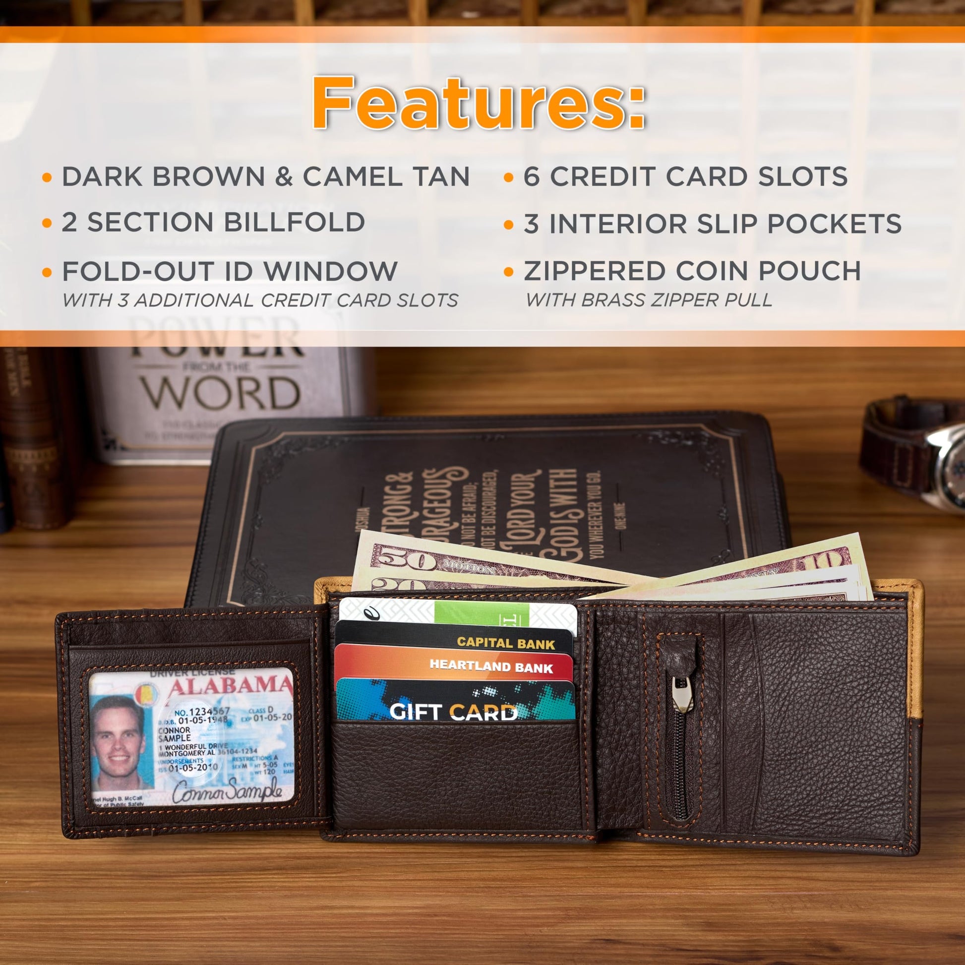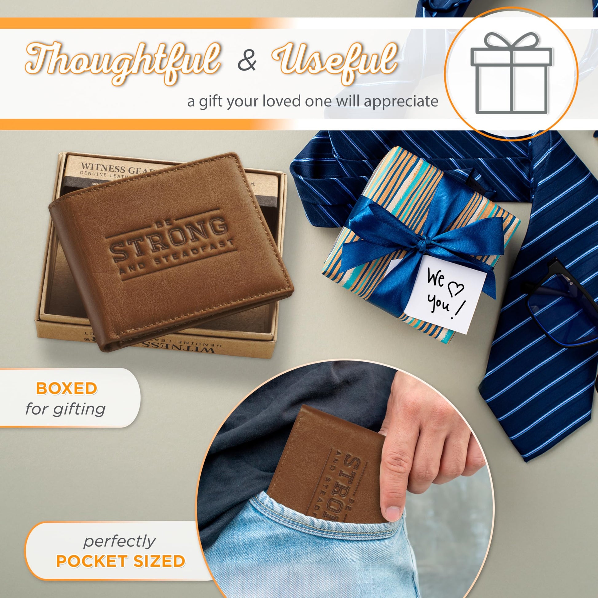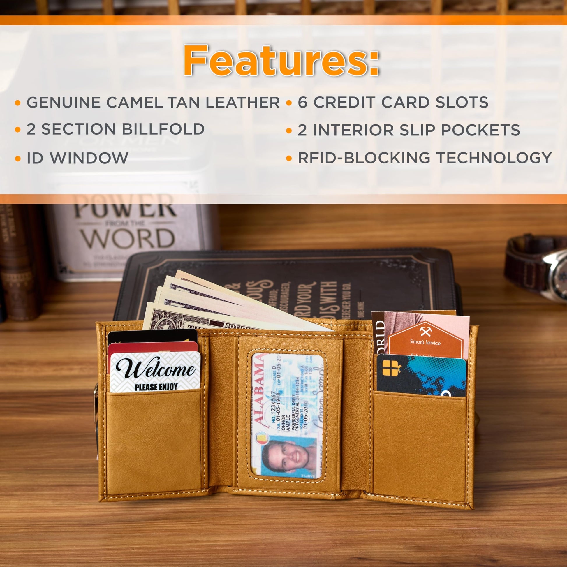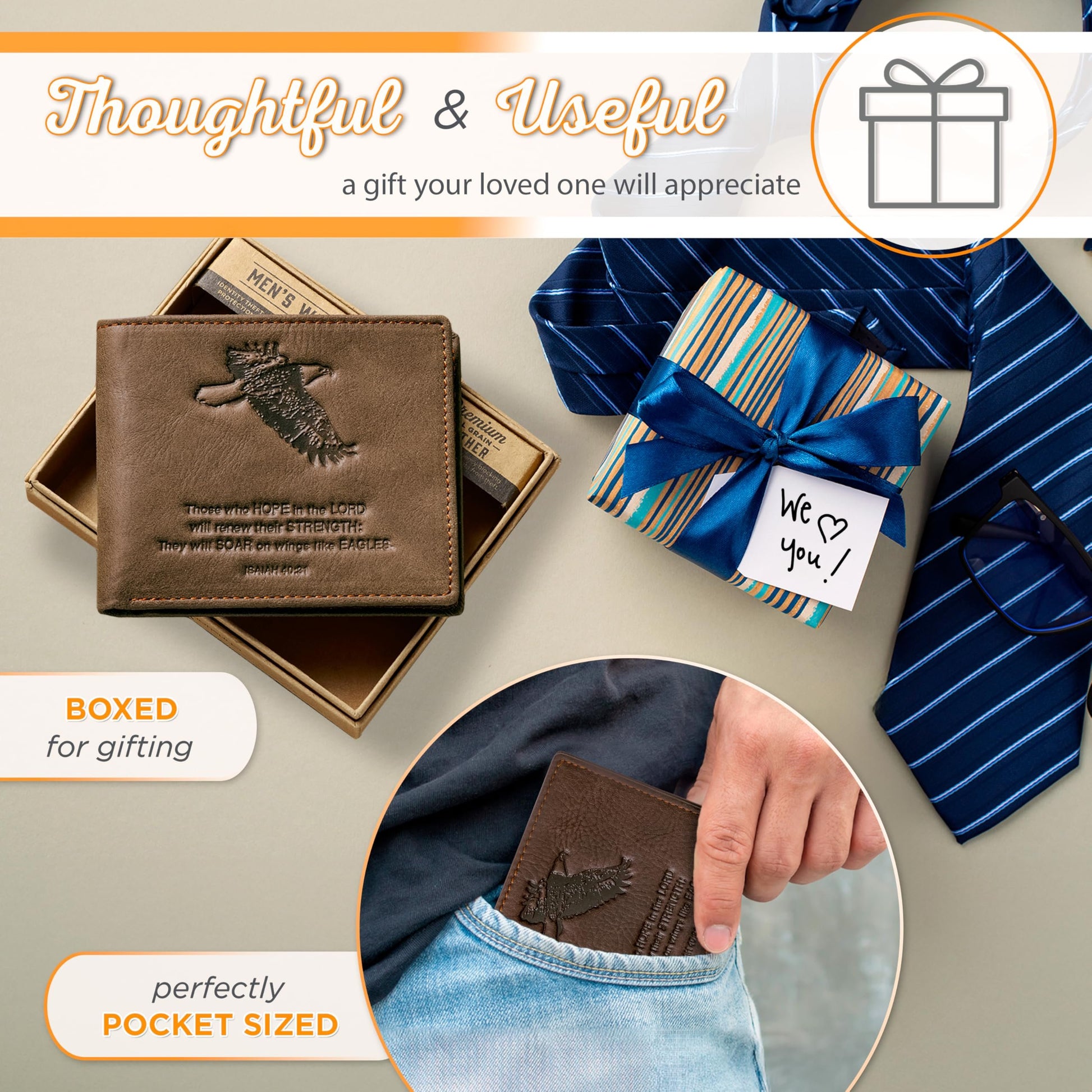 Christian Art Gifts Genuine Premium Full Grain Leather RFID Blocking Silver Engraved Cross Wallet for Men: Multi Pocket Billfold w/Removable ID Window Accessory for Credit Cards, Bills, Photos, BlackPremium Full-Grain Leather Mens Christian Wallet: The sturdy bifold design features two nylon interior sections to store bills, 5 card/ID slots, 4 multipurpose slip pockets for notes and coupons, and an easy-access photo identification window. The large, roomy front slip pocket features a removable ID window that contains an additional 3 card slots.RFID Blocking Technology: The handsome wallet doesn't just look stylish, but it also protects your credit card and identity information to ensure your most sensitive information and data stays safe and secure from theft. Keep your money, change and other small valuables safe as you travel to work, school, church and more.Genuine Quality Leather Resists Wear & Tear: The tightly top stitched minimalist design is constructed with the traveling man in mind. It's sleek, slim, and portable and can be easily slipped into back and front pockets or your favorite jeans or dress pants, suit jacket pocket, or coat pocket.Scripture Accessory for Easy Gifting: The wallet is decorated with a small, stylish engraed silver cross emblem in the bottom right corner affirming you of your faith. This faith-inspired designs adds a soft, elegant touch to the wallet's smooth premium leather feel.Faith, Hope, & Love: Christian Art Gifts offers a wide variety of faith-based items for all occasions. From Bible Covers, Coloring Books, Journaling Bibles, Journals, Planners and Devotional Books, the company strives to bring quality products with a special message of hope and encouragement on each one.