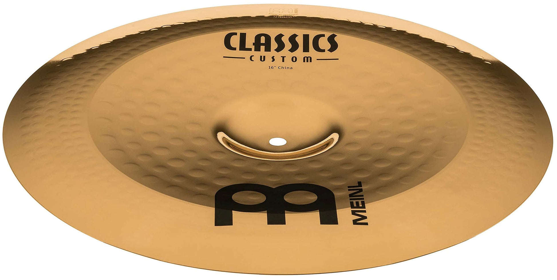 MADE IN GERMANY: Classics Custom Brilliant cymbals are made at the Meinl Cymbal factory in Gutenstetten, Germany; they're formed with high-tech German engineering for consistent bright tone, powerful feel, and durability across all modelsWHY IT MATTERS: these cymbals will make your kit sound and look professional; plus, the big assortment makes it easy to find your voice whether it's just one piece or a matching complete setWHAT'S IN THE BOX: one 16" china cymbal; the Classics Custom Brilliant china cuts through mixes easily then gets out of the way, so it doesn't overtake; the flanged edge gives you smooth stick feel when striking with the shoulderDRIVING THE SOUND: made of durable B12 bronze alloy weighted and shaped for loud volume and controlled sustain; fully lathed surfaces with brilliant finish produce clean tone, and precision hammering dials-in musical frequenciesTHE UPSIDE FOR YOU: you'll be heard next to distortion charged guitar amps or in wide-open, large rooms with a bright cymbal cut that doesn't overtake or ring out foreverZOOM IN: the mirror-like finish adds shimmer and brilliance to both the sound and look; these cymbals will give your kit a great stage presenceBEST FOR: rock, metal, fusion, worship; ALSO GREAT FOR: high-energy pop, R&B, funk