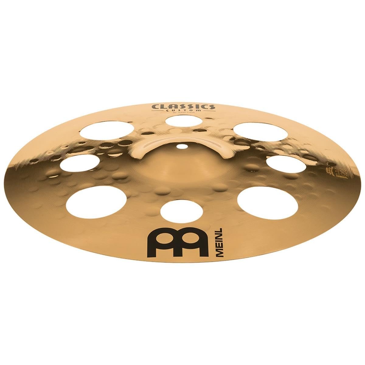 Meinl 16" Trash Crash Cymbal with Holes - Classics Custom Brilliant - Made in Germany, 2-YEAR WARRANTY (CC16TRC-B)MADE IN GERMANY: Classics Custom Brilliant cymbals are made at the Meinl Cymbal factory in Gutenstetten, Germany; they're formed with high-tech German engineering for consistent bright tone, powerful feel, and durability across all modelsWHY IT MATTERS: these cymbals will make your kit sound and look professional; plus, the big assortment makes it easy to find your voice whether it's just one piece or a matching complete setWHAT'S IN THE BOX: one 16" trash crash cymbal; hole cut-outs give the cymbal a trashy, dry tone and shorten its sustain; great for fast fills with extra bite, crash-riding, or cymbal stackingDRIVING THE SOUND: made of durable B12 bronze alloy weighted and shaped for loud volume and controlled sustain; fully lathed surfaces with brilliant finish produce clean tone, and precision hammering dials-in musical frequenciesTHE UPSIDE FOR YOU: you'll be heard next to distortion charged guitar amps or in wide-open, large rooms with a bright cymbal cut that doesn't overtake or ring out foreverZOOM IN: the mirror-like finish adds shimmer and brilliance to both the sound and look; these cymbals will give your kit a great stage presenceBEST FOR: rock, metal, fusion, worship; ALSO GREAT FOR: high-energy pop, R&B, funk