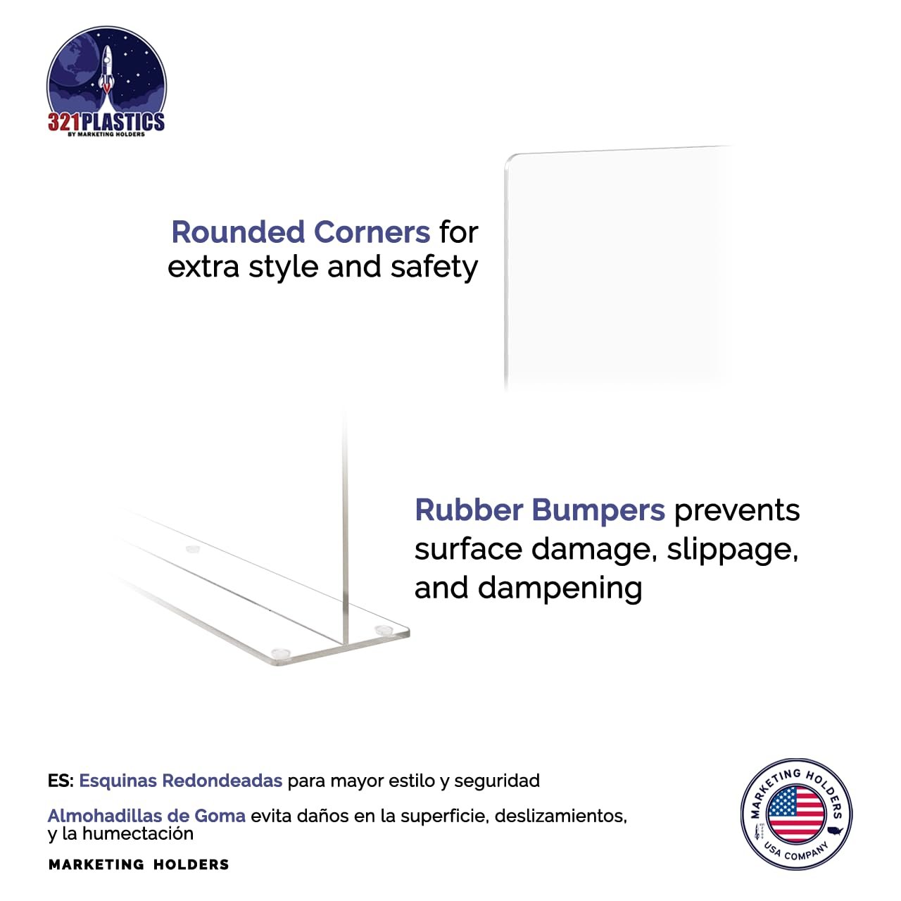 Square Freestanding Sink Splash Guard Barrier Product Features: Clear Acrylic Countertop Splash Guard Barrier Overall Dimensions: 19"W x 4.5"D x 18"H This sink splash guard helps clinics and hospitals maintain safety standards and practice procedures. The splash guard is easy to use and and move around to different workstations. Maintain patient care and safety with the freestanding square sink splash guard. This sink splash shield is made from high quality acrylic for maximum durability. In the frontline battle against infectious diseases, safeguarding healthcare professionals is paramount. Our Acrylic Medical Splash Guard serves as an essential barrier, providing an extra layer of protection against splashes, sprays, and airborne contaminants in medical and laboratory settings. This acrylic guard keeps water and other fluids from splashing out into other areas and workstations. This splash guard is offered in several different sizes in a couple of styles. The splash guard is lightweight to tote around for quick access and portable use. Splash guards and other safety items, such as PPE dispensers can be found at Marketing Holders. The divider is an affordable and quick protection solution for your office or restaurant. Splash shields can also be used as a barrier between customers and employees. It can be used to protect countertops by a sink, and to protect workplaces from water splashing onto surfaces. It can even be used at home by the bathtub to help protect the floor from kids splashing. Easy to clean, and is ready for use out of the box. Providing sufficient commercial sink splash guards can reduce the chances of foodborne illness, slip and fall accident or health code penalties. Getting the correct type of splash barrier can save you money in the long run! Protect your patients and others by maintaining a high level of safety with our freestanding acrylic guards. All sizes are approximate Tolerances: Thickness +/- 10% Do not clean with solvents such as rubbing alcohol or acetoneClear Acrylic Countertop Splash Guard BarrierOverall Dimensions: 19"W x 4.5"D x 18"HThis sink splash guard helps clinics and hospitals maintain safety standards and practice procedures. The splash guard is easy to use and and move around to different workstations. Maintain patient care and safety with the freestanding square sink splash guard. This sink splash shield is made from high quality acrylic for maximum durability. In the frontline battle against infectious diseases, safeguarding healthcare professionals is paramount.This acrylic guard keeps water and other fluids from splashing out into other areas and workstations. This splash guard is offered in several different sizes in a couple of styles. The splash guard is lightweight to tote around for quick access and portable use. Splash guards and other safety items, such as PPE dispensers can be found at Marketing Holders.The divider is an affordable and quick protection solution for your office or restaurant. Splash shields can also be used as a barrier between customers and employees. It can be used to protect countertops by a sink, and to protect workplaces from water splashing onto surfaces. It can even be used at home by the bathtub to help protect the floor from kids splashing. Easy to clean, and is ready for use out of the box.Providing sufficient commercial sink splash guards can reduce the chances of foodborne illness, slip and fall accident or health code penalties. Getting the correct type of splash barrier can save you money in the long run! Protect your patients and others by maintaining a high level of safety with our freestanding acrylic guards. All sizes are approximate. Tolerances: Thickness +/- 10%. Do not clean with solvents such as rubbing alcohol or acetone