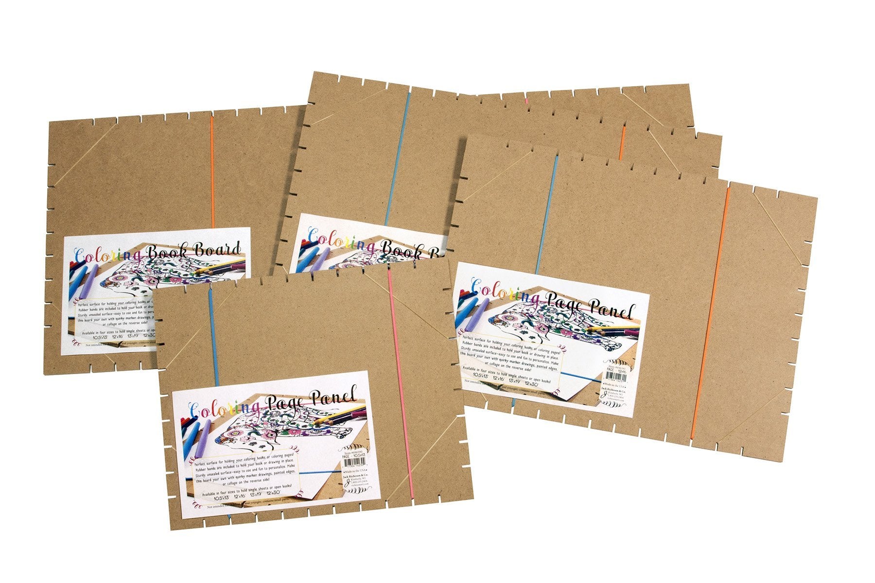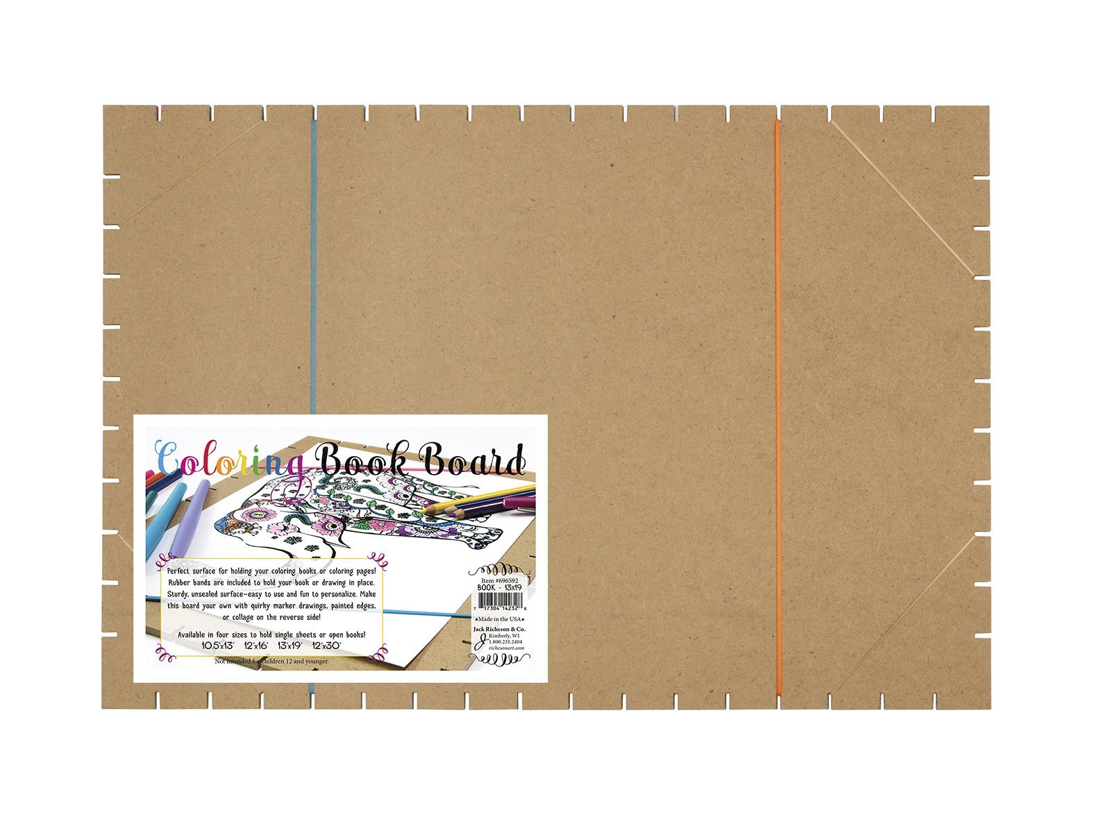 Designed by artists and coloring book enthusiasts, this unique coloring board is ideal for a single sheet of paper - or holding open a coloring book. A clever system of notches and rubber bands can be adjusted to hold your paper in place. The smooth surface is great for coloring, drawing, sketching or writing on. Use when traveling or in your favorite chair. The 13 x 19 inch size is perfect for any page taken from an over-sized coloring book, or keeping a standard sized book open. 4 small and 2 large rubber bands are included. Made in the USA by Jack Richeson.Unique panel is designed to be a sturdy surface to color and draw on6 rubber bands can be adjusted to hold paper - or an open coloring bookThis board offers freedom to work on different size paperUse while traveling or in your favorite chairThis board size is ideal for holding an open coloring book