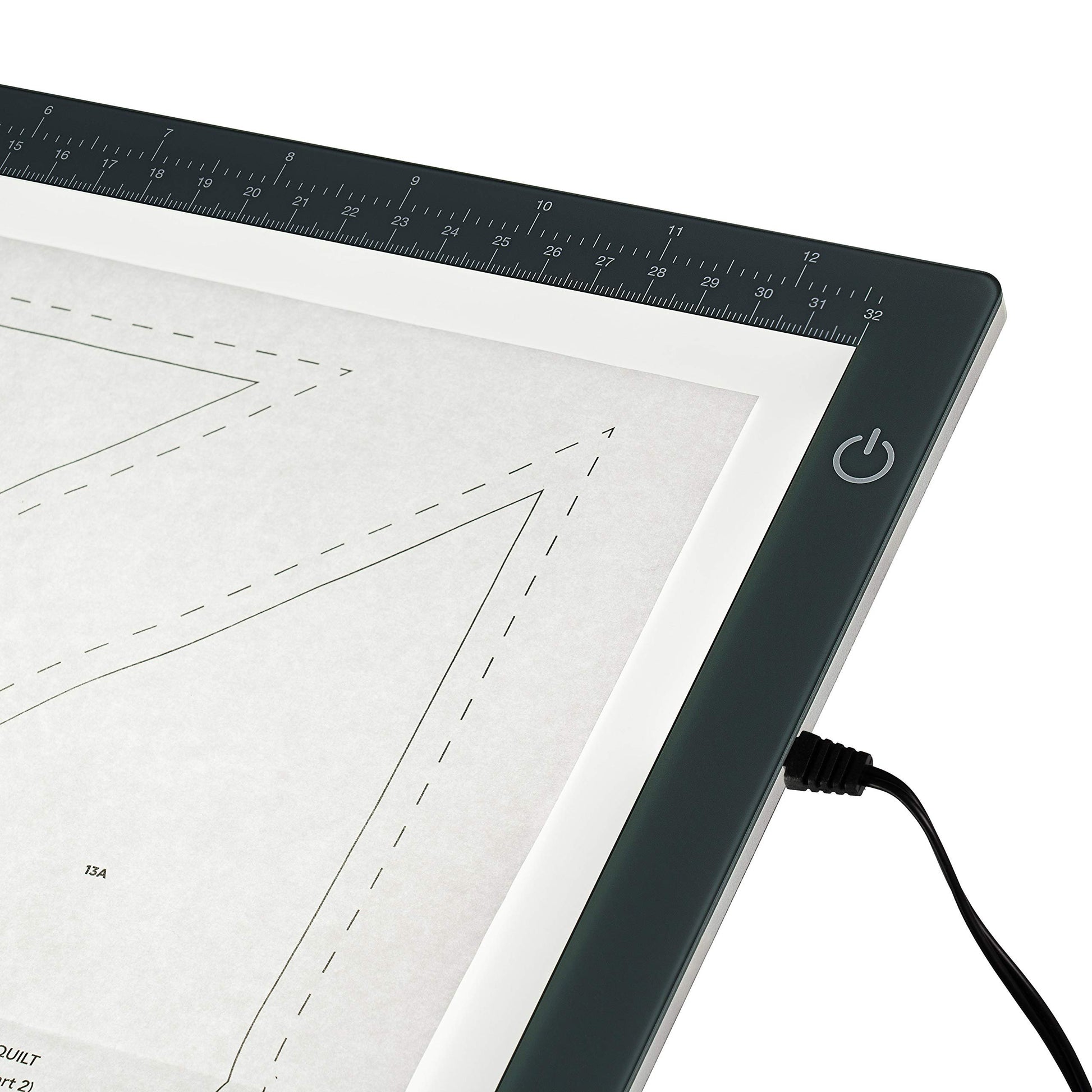 Daylight Wafer 1 Light Box, 9 x 12-InchDaylight Company-Wafer 1 Light Box. Ideal for sewing, quilting, embroidery, calligraphy, stenciling, paper crafts and much moreEASY TO USE - Experience an even spread of adjustable LED light that extends seamlessly from edge to edge across the lightbox. This LED lightbox ensures uniform brightness throughout its surface, with dimmability tailored to accommodate various paper weights and fabric thicknesses. Additionally, it features a practical marking guide on its sides, measuring in both inches and centimeters, for added convenience during your creative endeavors.LIGHTWEIGHT AND ECO FRIENDLY - This A2-sized lightbox is 8 mm (0.3″) thick, offering a sleek profile. Powered by a Daylight light source, it ensures precise color matching with 320 lumens. Its LED technology provides uniform brightness across the work surface. Fully dimmable with a memory function, you can adjust the illumination to your preference. The illuminated area spans 60 cm x 46 cm (23.6″ x 18″), offering ample space for your creative endeavors.MULTI FUNCTIONAL - Perfect for tracing, sketching, scrapbooking, and a range of craft projects, this lightbox offers versatility. With a spacious 18X23.5 inch work area enhanced by a ruler-gridded frame, it provides ample creative space. Moreover, it's lightweight and eco-friendly, making it a practical and environmentally conscious choice for your artistic pursuits.QUALITY MATTERS - At our premium lighting brand, we place great importance on innovation, artistic expression, and the creation of a welcoming atmosphere. We expertly combine light quality, ergonomics, and design to meticulously craft the ideal lamps for your specific tasks. Our products go beyond mere aesthetics, as they are highly functional and truly make a difference in delivering the optimal lighting conditions for you to see every detail and color with utmost precision, exactly when it mat