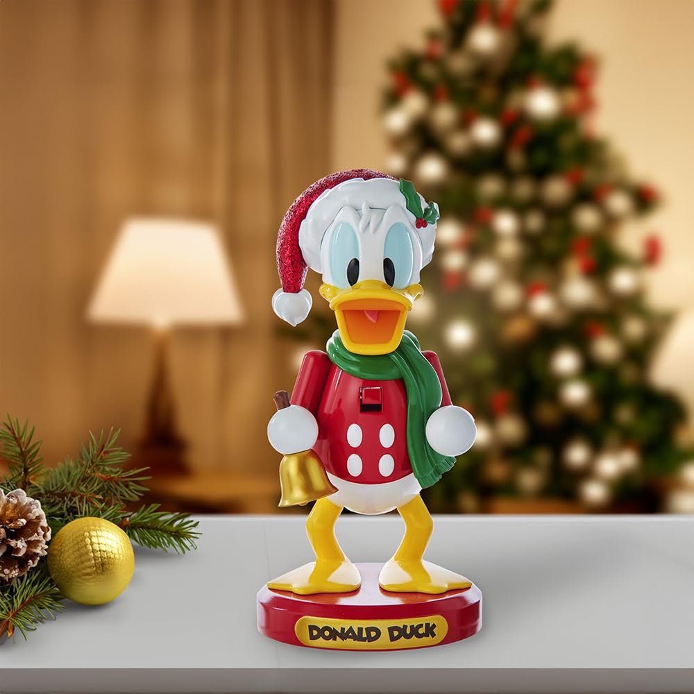 Disney Kurt Adler 6-inch Donald Duck NutcrackerMiniature Delight: Standing at a charming 6 inches tall, the Kurt Adler Disney Donald Duck Nutcracker is a petite yet impactful addition to your holiday decor.Enduring Craftsmanship: Crafted with precision and care, this nutcracker is constructed from premium materials, ensuring its longevity and enduring appeal.Disney Festive Charm: Donald Duck comes to life in festive attire, donning a Santa hat and vibrant red and green clothing, infusing your decor with Disney magic and holiday cheer.Heartwarming Gift: Perfect for Disney enthusiasts and collectors alike, this nutcracker makes a delightful present, spreading joy and nostalgia to those who receive it during the holiday season.