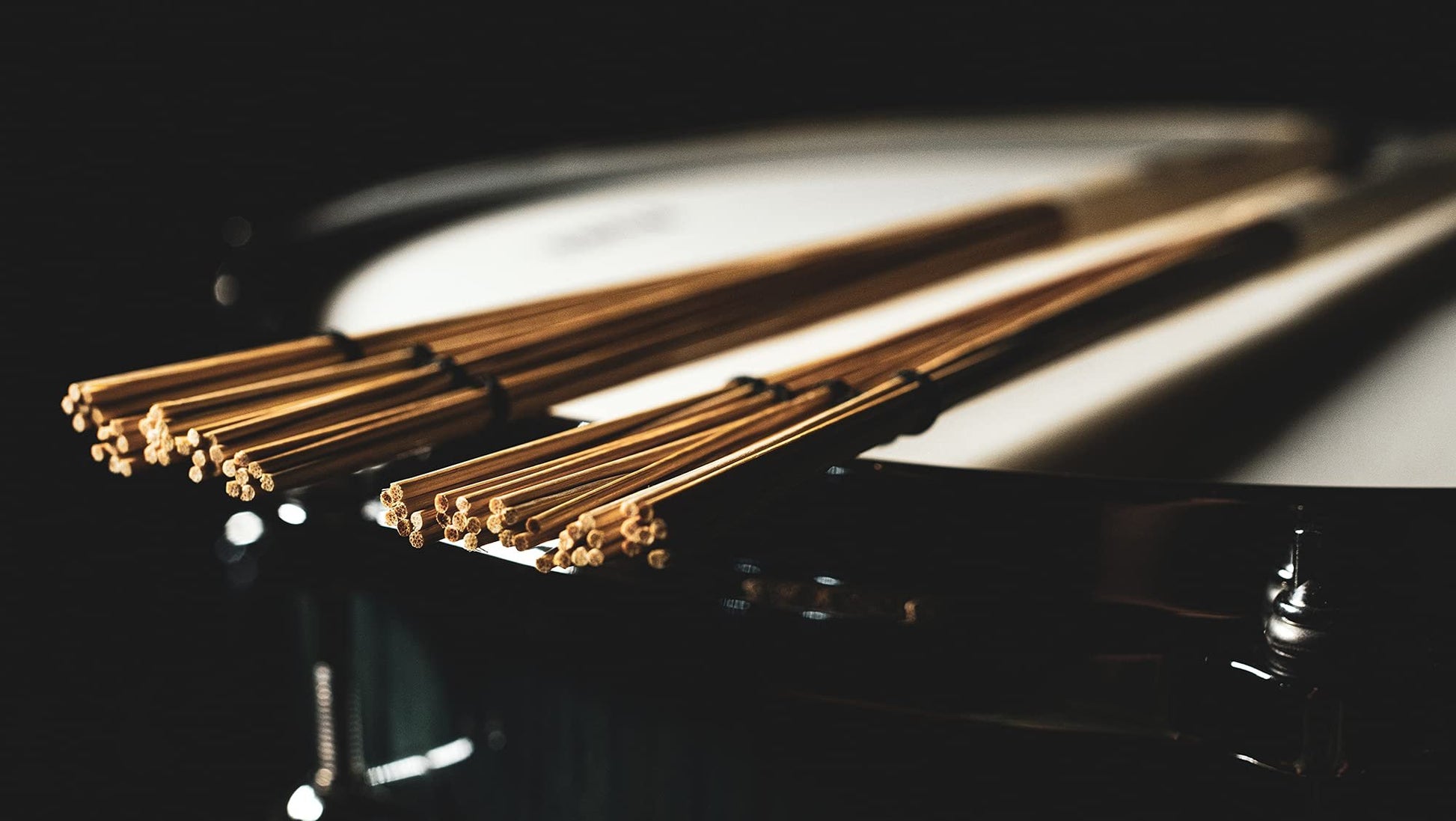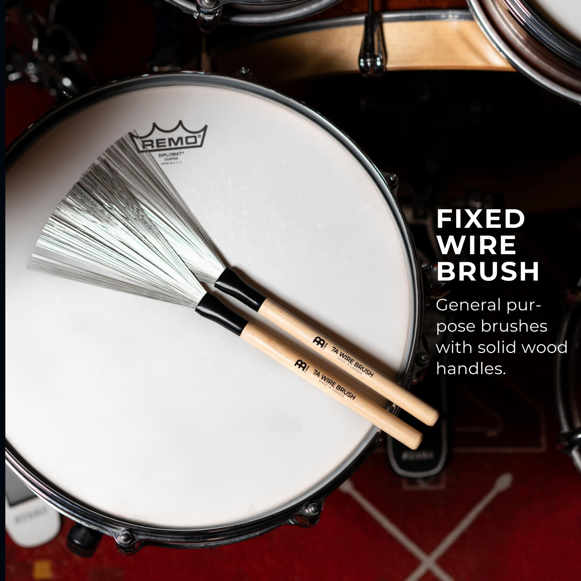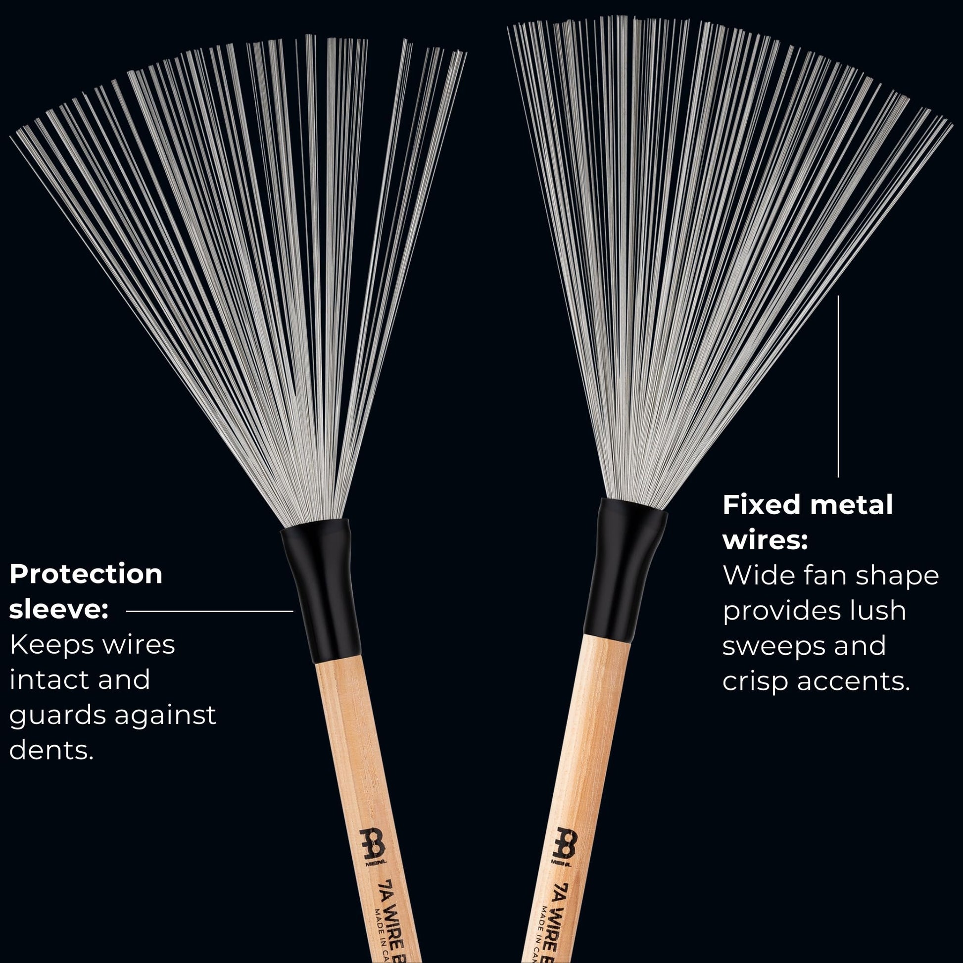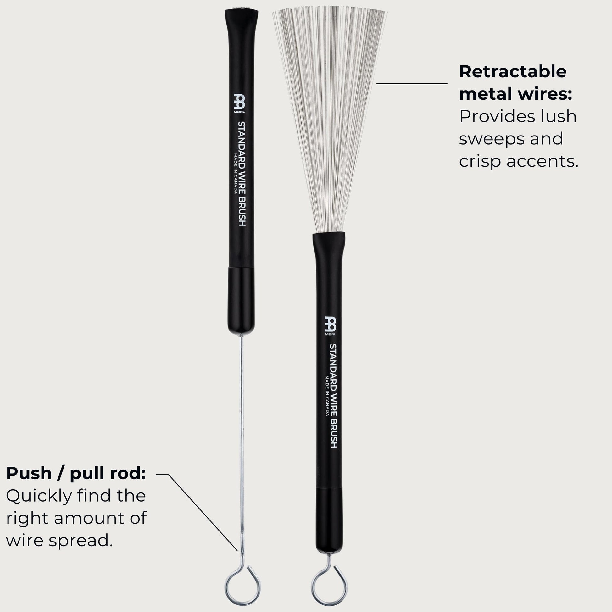 Meinl Stick & Brush Bamboo Drum Brushes Pair, Multi-Rod Bundle Specialty Drumsticks — for Jazz, Acoustic, and Low Volume Music, Natural, 15.120" Long, 0.560" Grip (SB205)BETWEEN BRUSHES AND STICKS: the Meinl Bamboo Brush has a texture sweet spot that's more delicate than drumsticks but sharper than wire brushesWHY IT MATTERS: they're perfect for volume control or creating a different mood that drumsticks and wire brushes can't touch; you can play the Bamboo Brushes all around your kit to draw out different tonesBAMBOO BRUSH SPECS: 15.120" long, 0.560" diameter grip, light bamboo dowels, sold in pairsCATCH UP QUICK: these brushes are made in Germany from premium bamboo; the bamboo dowels are high strength but also more elastic feeling than other materialsOF NOTE: comes with adjustable control rings that you can move up or down to alter the attack; position toward the tips for a tight sound or closer to the grip for a loose brush effectZOOM IN: the dowel tips are cut straight (no filing down); straight edge tips are needed on this brush to maintain a certain level of attack on all surfaces (drum heads, cymbals, percussion)THE BOTTOM LINE: Meinl Bamboo Brushes expand your low volume capabilities on the drum kit