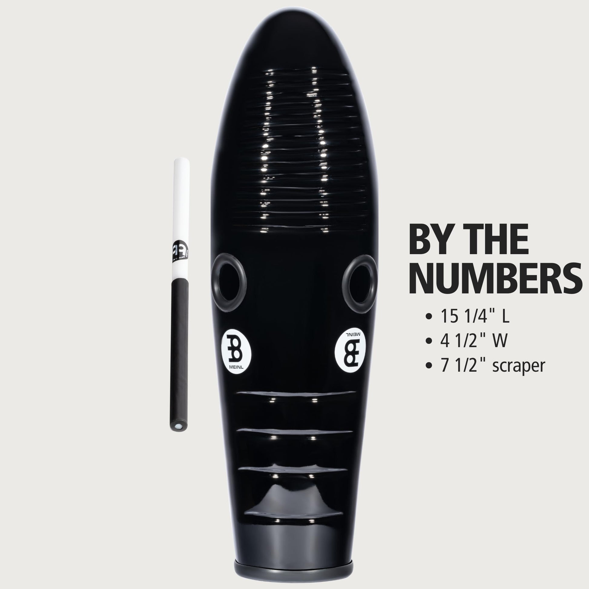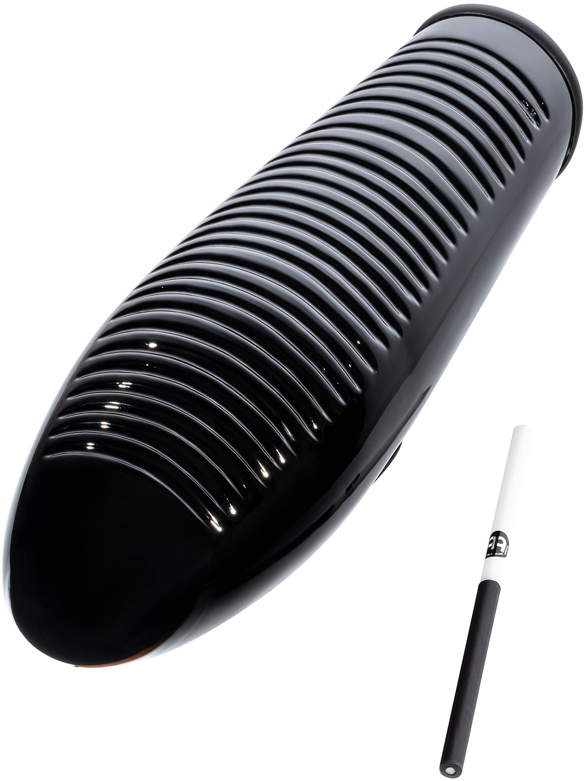 Fiberglass Guiro with Scraper, Three Sound Zones — NOT MADE IN CHINA — Great for Latin American Music, 2-YEAR WARRANTYOUR MOST SOLID GUIRO: the hard-to-damage, premium fiberglass body can take a lot more abuse than traditional wood; plus, it's unaffected by changes in weather which can affect soundWHY IT MATTERS: this instrument is used a lot in Latin American dance music and festivals where you're playing outside; you won't have to worry about damage, plus, its sound doesn't go dull when humidity changesOF NOTE: there are three zones you can drag the scraper along to make different sounds; the main zone has a traditional sound, the looser packed ridges have a lower, resonant tone, and the super tight ridges have a quieter, high-pitch soundDRIVING THE SOUND: our premium fiberglass is molded with slightly rounded, shallow ridges that produce a deep and warm tone; this guiro's volume picks up where wood guiros leave off, making it easier for your sound to carryZOOM IN: two rubber lined grip holes on back make it easy to hold and maintain resonance while playing; use them with your fingers like a bowling ballBY THE NUMBERS: measures 15 1/4" long x 4 1/2" wide and includes a 7 1/2" long synthetic scraperTHE BOTTOM LINE: it fits with traditional Latin American styles, and you can play it with modern pop music too; its three striking zones open up more sounds, and it's high strength for road and outdoor use