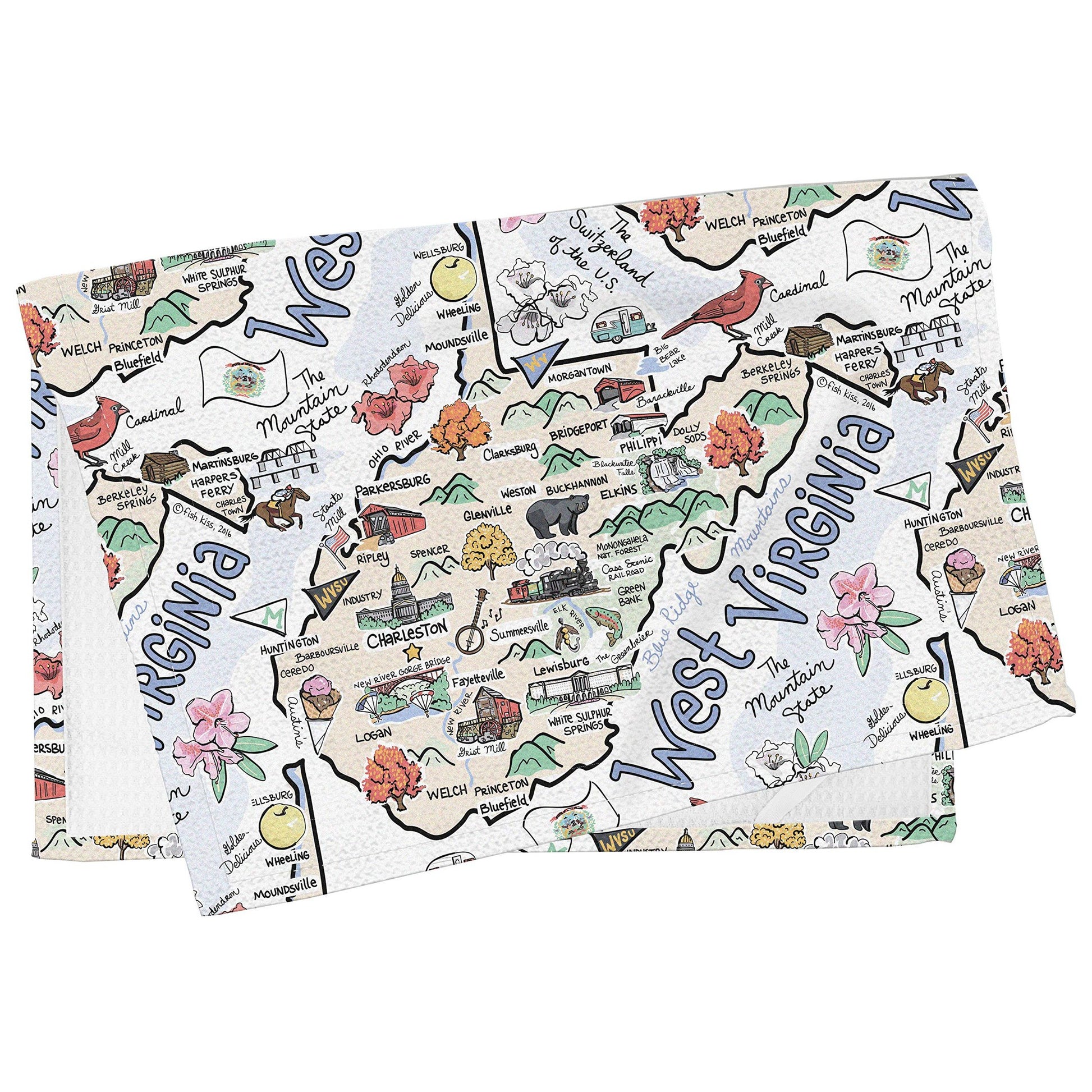 This multi-use towel is perfect for all your household needs: kitchen towel, guest bath, baby burp cloth, bar towel, and so much more. It's made from super soft microfiber which allows it to be stain resistant, durable, and washable.Immersive West Virginia Map: Dive into the intricate details of West Virginia with our 16"x24" microfiber towel featuring a meticulously hand-drawn map by Fish Kiss. Explore every nook and cranny of your favorite locations from New Orleans to Baton Rouge.Premium Microfiber Quality: Crafted from high-quality microfiber, our towel offers unmatched softness and durability. It's gentle on skin yet tough on dirt, ensuring a comfortable and effective cleaning experience whether you're on the road or at home.Versatile and Practical: Designed for multi-use, this towel is your ultimate companion for travel, outdoor adventures, and everyday use. Use it as a travel towel, beach blanket, picnic mat, or even as a stylish home decor piece.Easy Maintenance: Say goodbye to tedious cleaning routines. Our towel is fully machine washable, allowing for hassle-free maintenance. Plus, with its wrinkle and stain-resistant properties, it retains its pristine appearance even after repeated use.Convenient Hanging Loop: Never worry about misplacing your towel again. Equipped with a convenient hanging loop, our towel can be easily hung on hooks or racks for quick drying and easy access. Keep it within reach wherever your adventures take you.