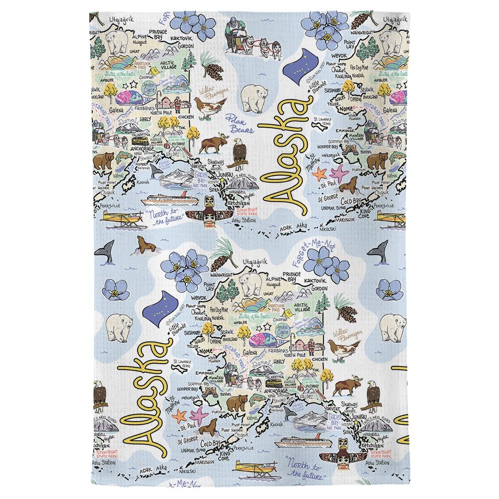 Fish Kiss 16"x24" Map Towel is 100% Microfiber Waffle Weave Help You Explore in Detail – Our Super Absorbent & Soft, Machine Washable State Map Towel is Stain & Wrinkle Resistant
