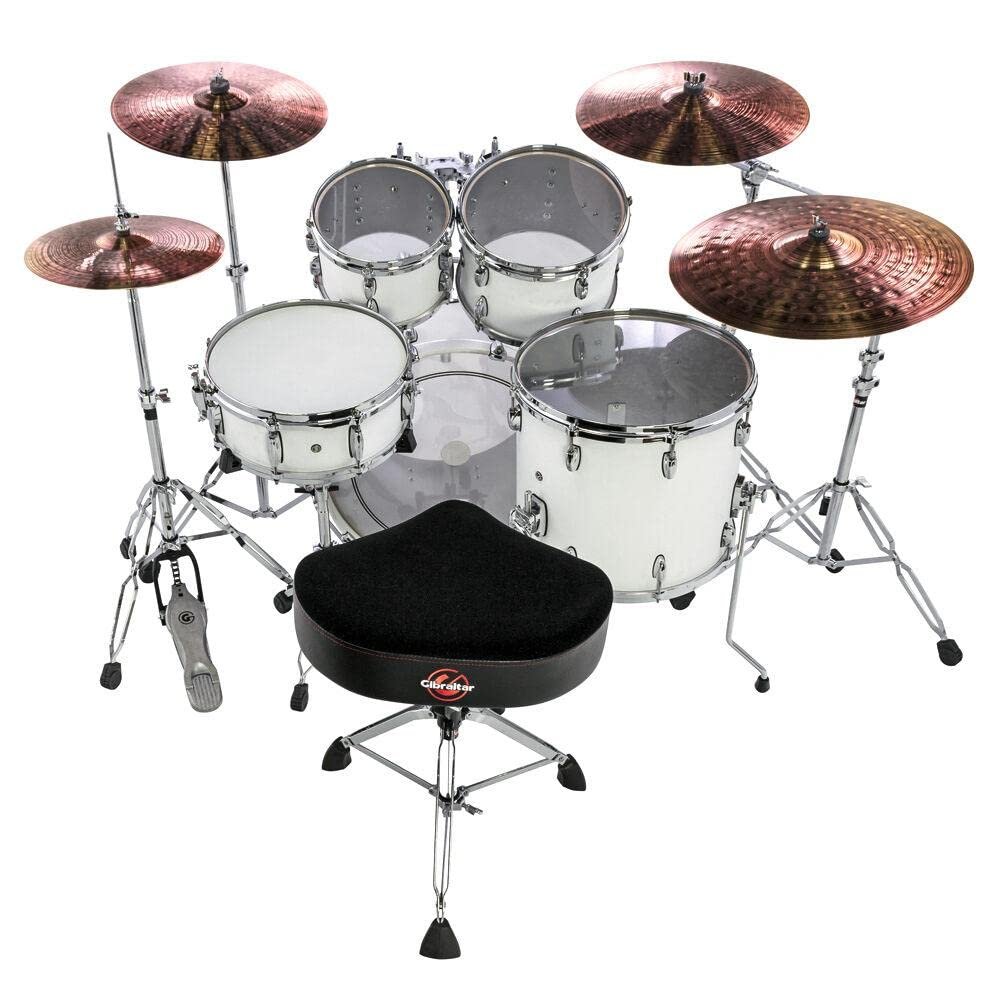 Gibraltar Pro Oversized Motorcycle Style ThroneOversized saddle seat with luxurious Cordura top and vinyl EdgesTop grade foam for maximum comfort and rock solid double braced leg baseSuper-lock Cast seat fastening system and super foot solid foundation rubber feetThreaded height adjustment and memory lock height adjustmentHeight range: 21" To 27"