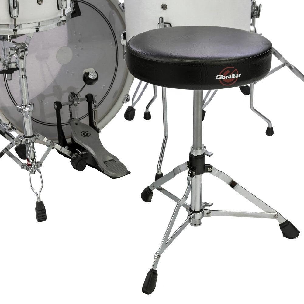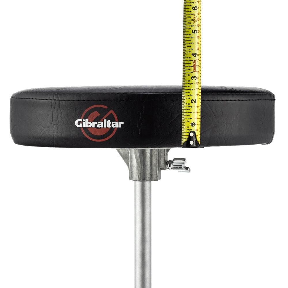 Gibraltar Drum Seat Throne, 13” Round Vinyl Seat, Adjustable Height, Cushioned Top with Memory Lock, Single-Braced Collapsible Tripod for Portability (5608)LIGHTWEIGHT & PORTABLE: Designed for drummers who need a reliable yet easy-to-transport throne, the Gibraltar 5608 is perfect for gigging musicians, practice sessions, and home setups. Its lightweight build makes carrying and setup effortless without compromising stability.COMFORTABLE CUSHIONED SEAT: The 13” round vinyl top is packed with top-grade foam padding, ensuring superior comfort and support for long playing sessions. Whether you're practicing for hours or performing on stage, this cushioned seat helps reduce fatigue and keeps you focused on your drumming.ADJUSTABLE HEIGHT WITH MEMORY LOCK: The full-knurled height adjustment support stem allows precise positioning between 16.5” and 23”, so you can customize your seat height for optimal playing posture. The built-in memory lock ensures your preferred height stays in place, providing consistency every time you play.STABLE & DURABLE BASE: The single-braced collapsible tripod base is designed with all-cast height adjustment collars and nylon bushings, offering reliable support and durability. This sturdy design keeps you balanced while playing, whether on stage or in the studio.BUILT FOR CONVENIENCE: The collapsible design makes setup, breakdown, and storage quick and effortless, making it an excellent choice for drummers who need a portable and dependable throne. Whether you're a beginner or a professional, the Gibraltar 5608 delivers the perfect blend of comfort, stability, and portability for any drummer.