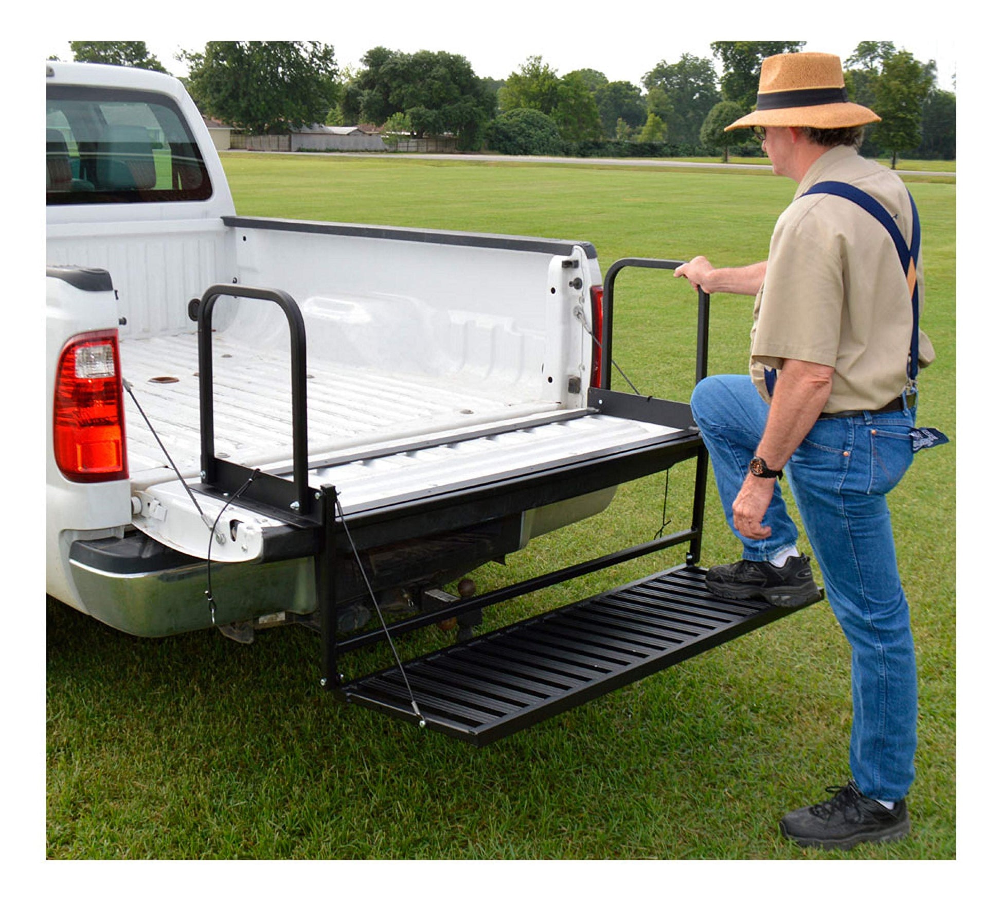 Great Day Magnum Truck N’ Buddy Tailgate Folding Step/Seat Platform for Standard Size Pickup Trucks - 400 lbs Weight Capacity - Black Powder-Coated Finish 34.5”x 35.5”x 58”, TNB3000MBQUICK AND EASY ACCESS TO THE TRUCK: Climbing into and out of trucks and is no longer strenuous or dangerous; Magnum Truck N’ Buddy makes this process very easy and much safer - walk into it as if walking up steps; also perfect for loading aging petsFOLDING SEAT: No more searching for a seat at a job site or in the outdoors - if you have your truck with Magnum Truck N’ Buddy installed, you have a seat; no need to take up valuable space with camp chairs - just drop the tailgate and have a seatSAFE AND EASY USE: The Magnum Truck N’ Buddy folds and unfolds effortlessly in second; The platform is supported by two industrial cables giving the Buddy an overall weight limit of 400 lbs; two handy 18” grab-rails insure safe entrance and exitROBUST HOUSING: The Magnum Truck N' Buddy is constructed of heavy-duty aircraft aluminum and finished in a super-tough black powder-coat enamel to insure years of dependable service; it weighs only 35 lbs and measures 34.5” h x 35.5” d x 58” wINSTALLATION: The Magnum Truck N' Buddy attaches quickly and easily to the tailgate of STANDARD SIZE pickups with 14 metal screws; does NOT fit small pickups such as Ford Rangers, Chevy S-10s, etc; will NOT fit trucks with bed covers of any type