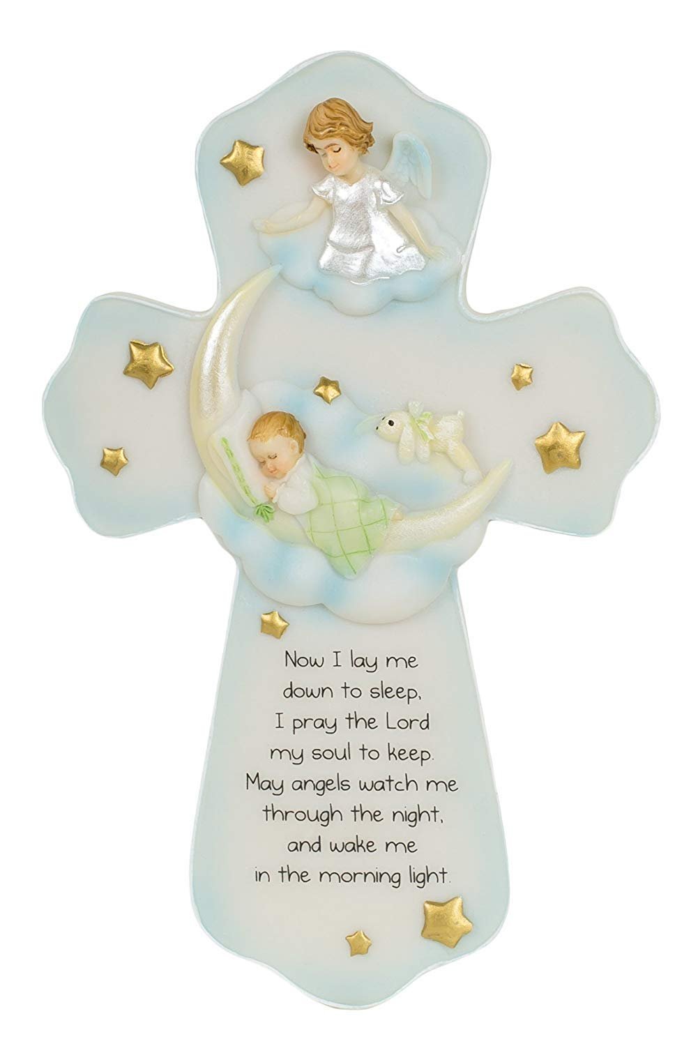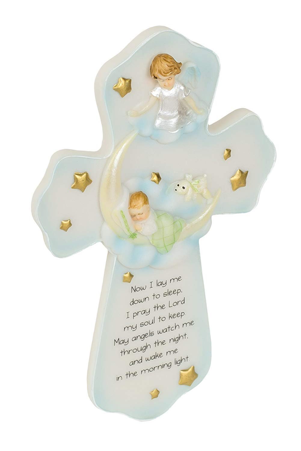 Roman Guardian Angel Sweet Dreams Baby Cross. Roman number 62124. Brand new, direct from Roman Inc.Resin Cross featuring Guardian Angel and Sleeping Child,Prayer: Now I lay me down to sleep, I pray the Lord my soul to keep. May angels watch me through the night and wake me in the morning light.,Measures 7"H X 4.8"L,Gift Box Included,