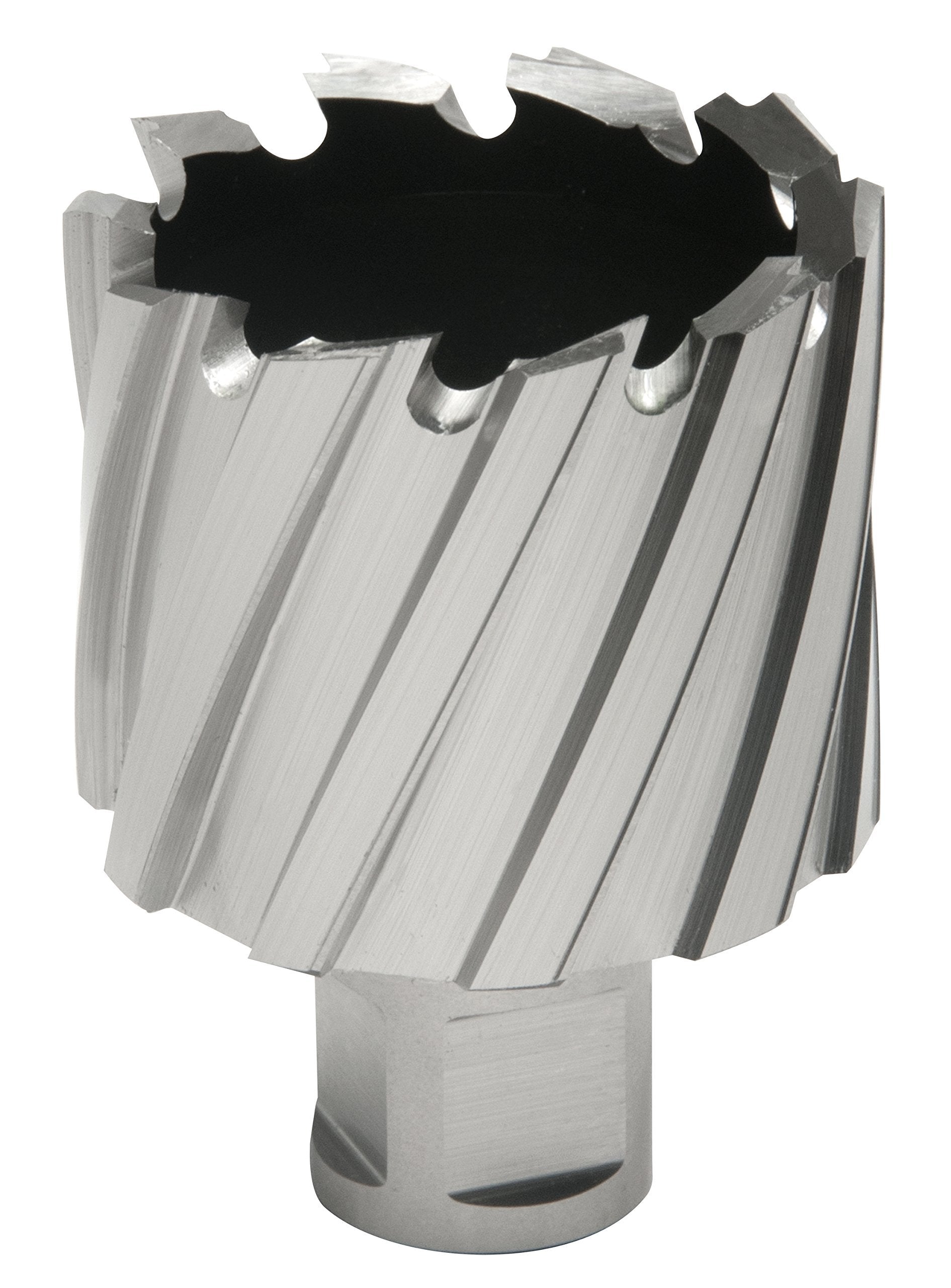 For use with hougen portable magnetic drills andpetitive models on materials up to 275 bhn (28. 5 hrc). They are made of hardened m2 high speed steel and are precision ground for excellent performance throughout the cut and long tool life. They require less horsepower and thrust to cut, and last much longer than traditional holemaking methods. "12, 000-series" cutters have a 3/4" diameter double-flatted shank. Modified end tooth geometry is also available for drilling in stacked plate applications. For extended tool life and lower cost per hole "12, 000-series" cutters are resharpenable.