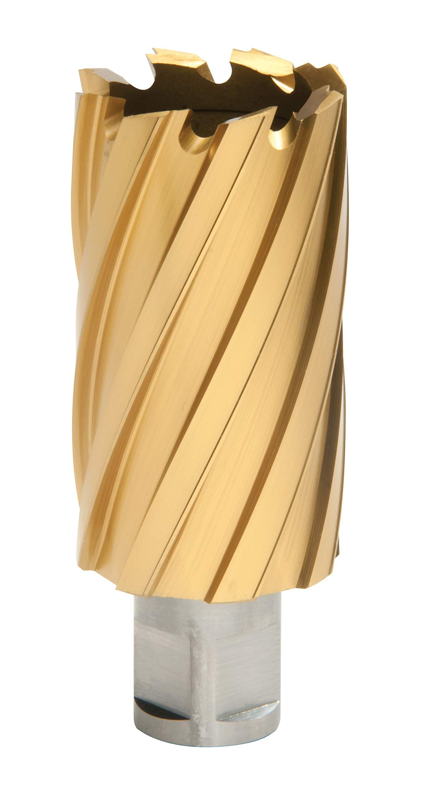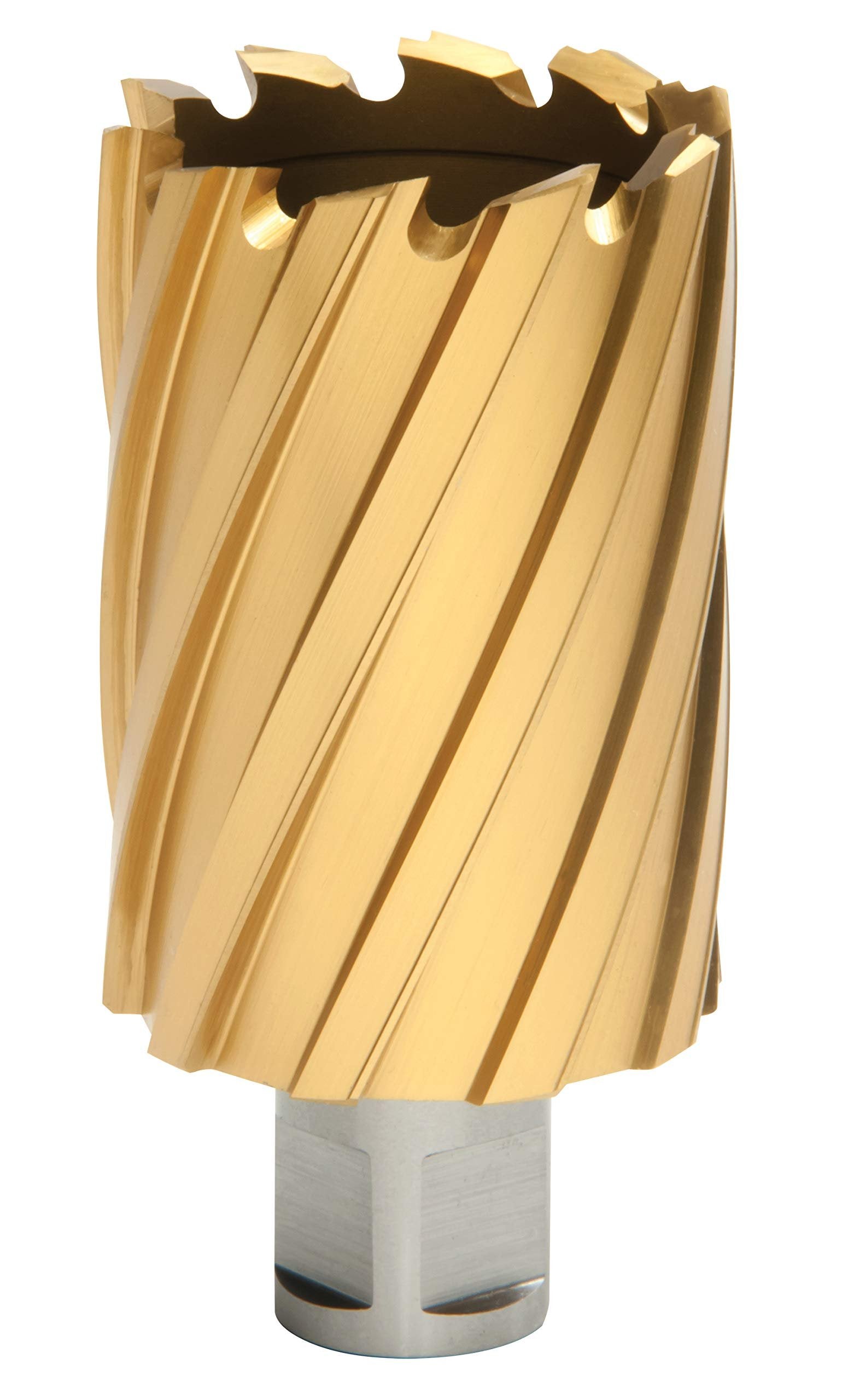 Convenient annular cutter kit holds five of the most popular sizes of TiN clearance cutters