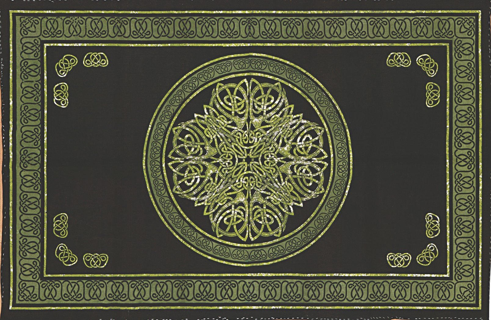 India Arts Celtic Circle Tapestry-Bedspread-Wall Hanging-Green, Black Green,