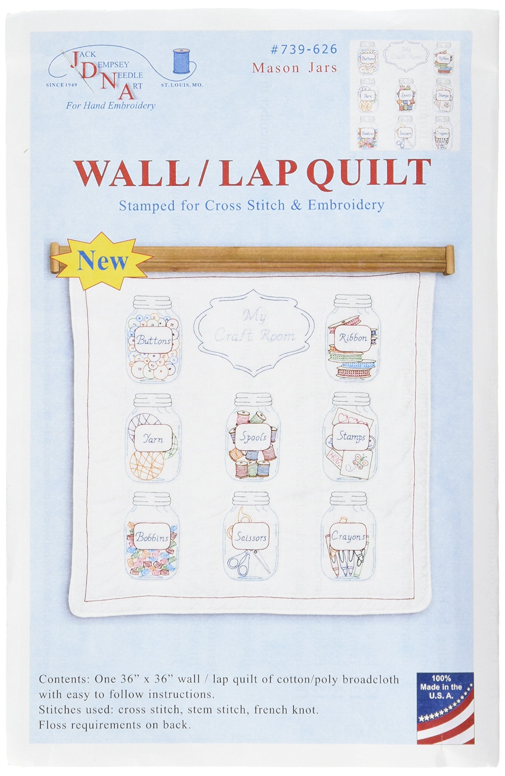 Jack Dempsey Needle Art Jack Dempsey 739-626 Stamped Wall Or Lap Quilt, 36" x 36", Mason Jars, WhitePackage contains one 36x 36wall quiltIncludes DMC floss chart and simple to follow stitching instructionsInk washes outMade in the U.S.A