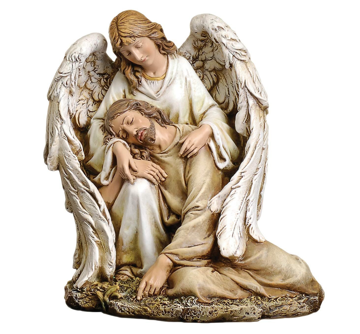 KEY FEATURES: This heartwarming figure shows the angel comforts and strengthens Christ; measures approximately 7" high x 6.25" wide x 5.75" deep; gift boxed