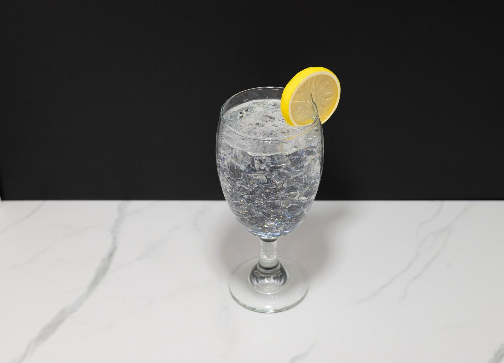 Glass of ice water with a lemon slice on the side of the glassGreat for displayEasy to clean