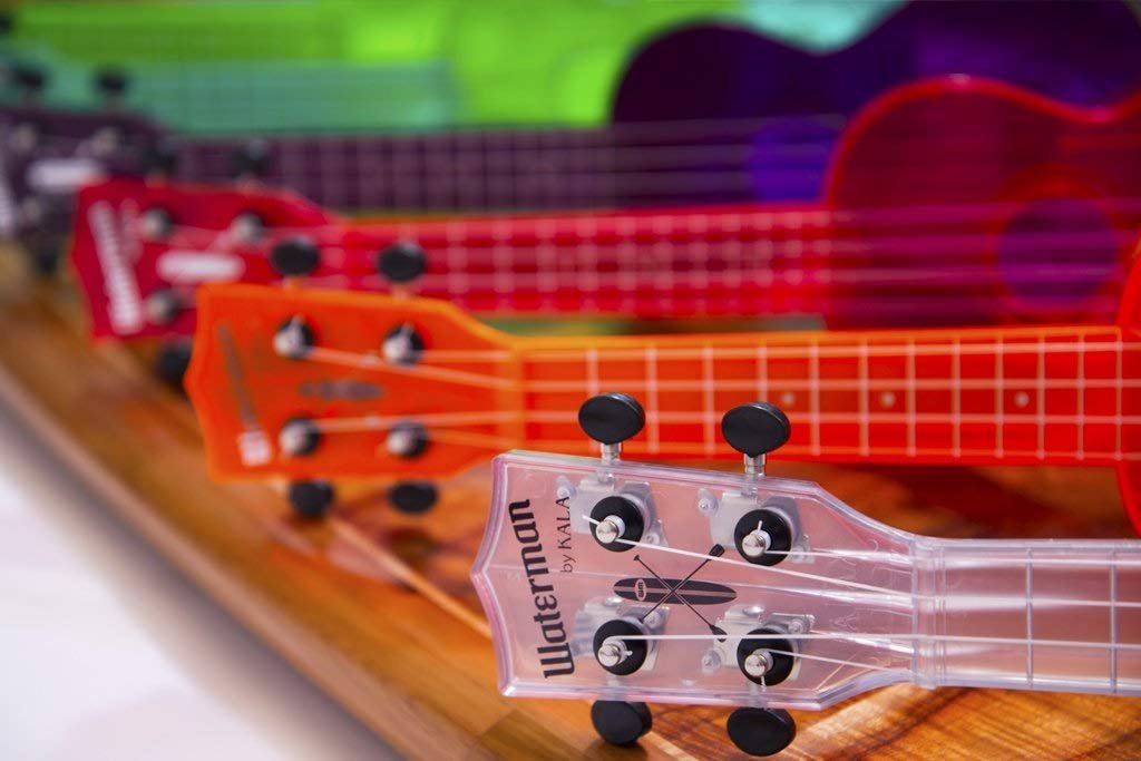 Kala Brand Music Co. The Waterman, 4-String Ukulele, Right, Transparent, Soprano (KA-SWT)Soprano Ukulele Composite Neck Composite Fingerboard Composite Nut & Saddle Open Geared Black Knob Tuner Aquila Strings Water resistant Includes gig bagThe Waterman is a high-quality, affordable ukulele that sounds great and stays in tuneIt's the portable, take-anywhere ukuleleTake it to the beach, the river, the lake, the mountains—take The Waterman anywhere