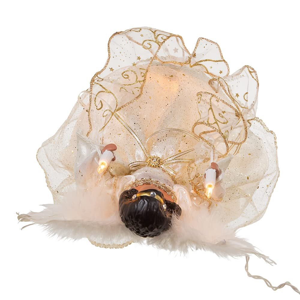 Kurt Adler 12-Inch UL 10-Light Ivory & Gold African American Angel Treetop
