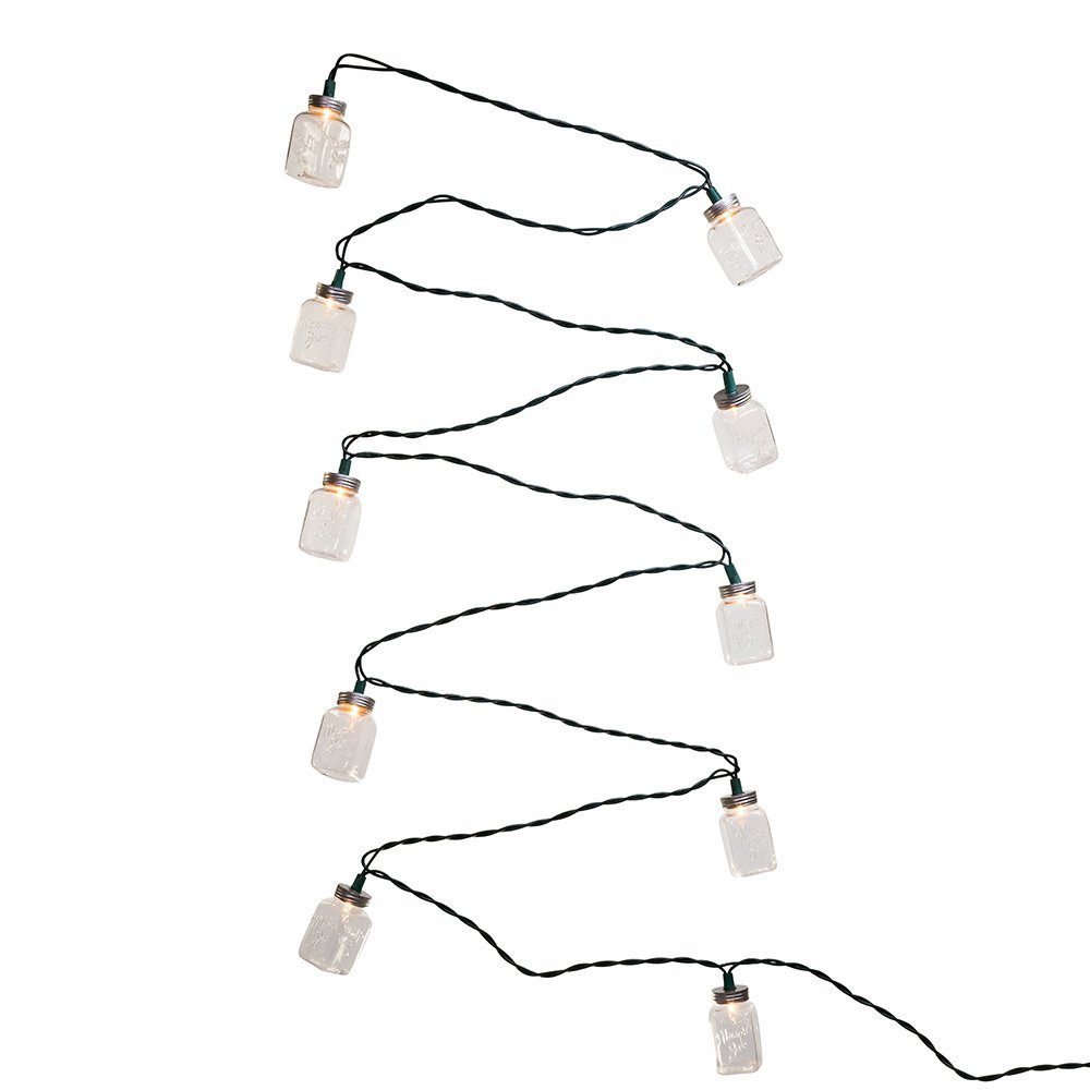 Kurt Adler UL 10-Light Clear Mason Jar Light SetMason jar light setTotal of 10 lights per setFor both indoor and outdoor use30" lead wire and 12" light spacing